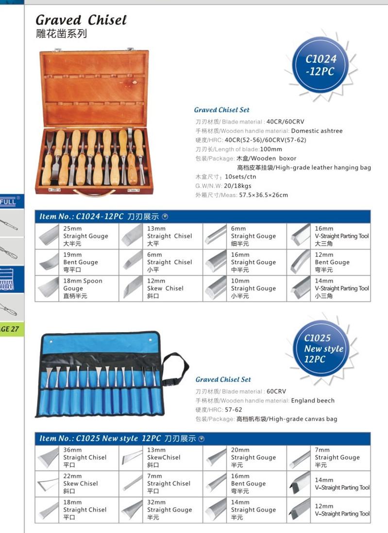 12 Piezas Cincel Tallado de Acero al Cromo Vanadio