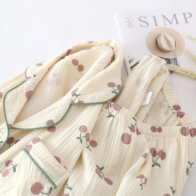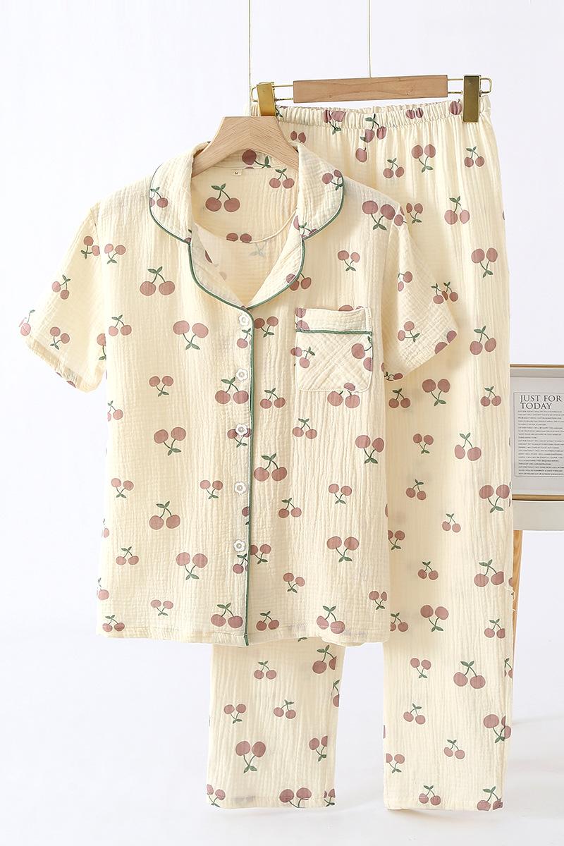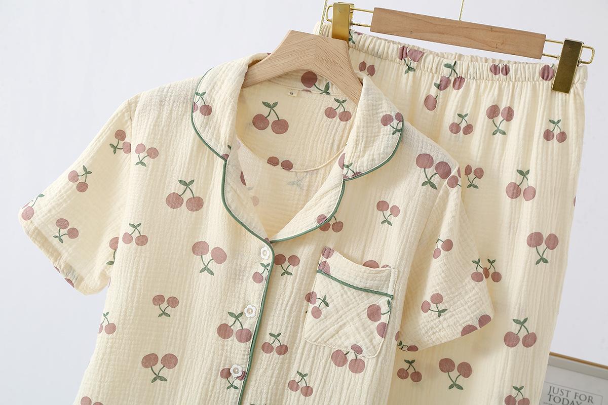Pijama de verano de manga corta para mujer, nuevo pijama de primavera y verano, pantalones de manga corta, traje de algodón, cárdigan de mujer, ropa de hogar de hilo de algodón