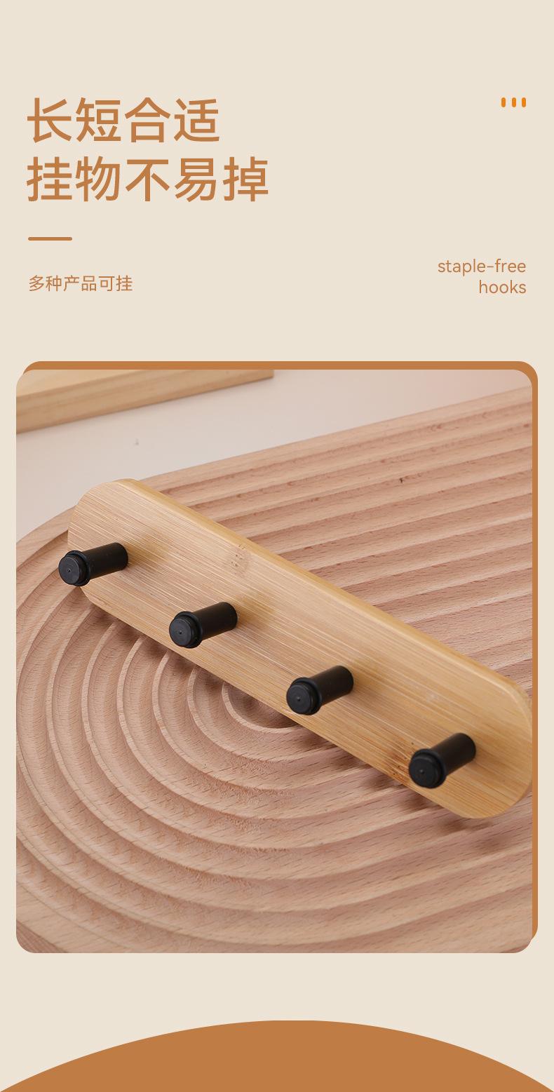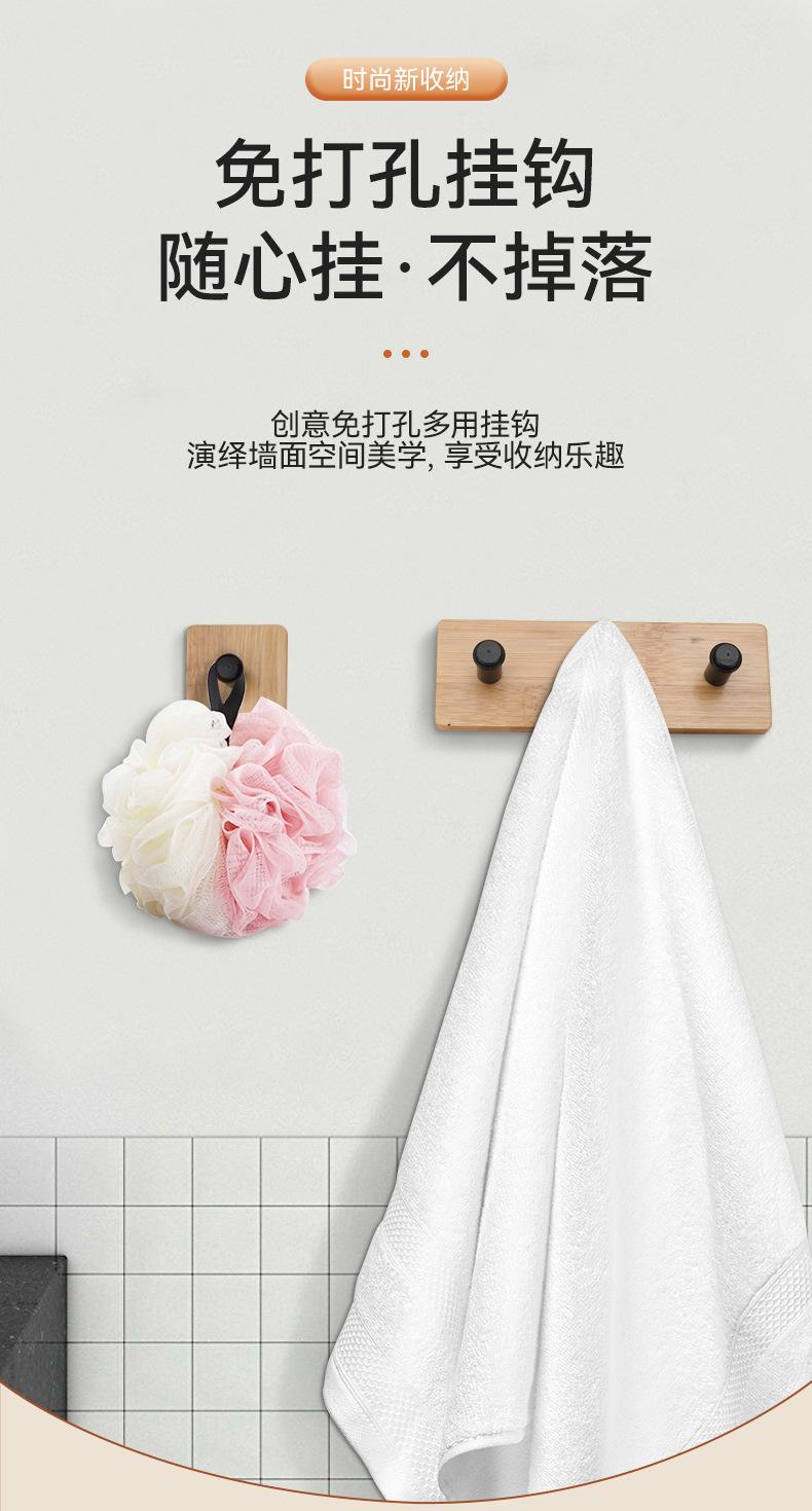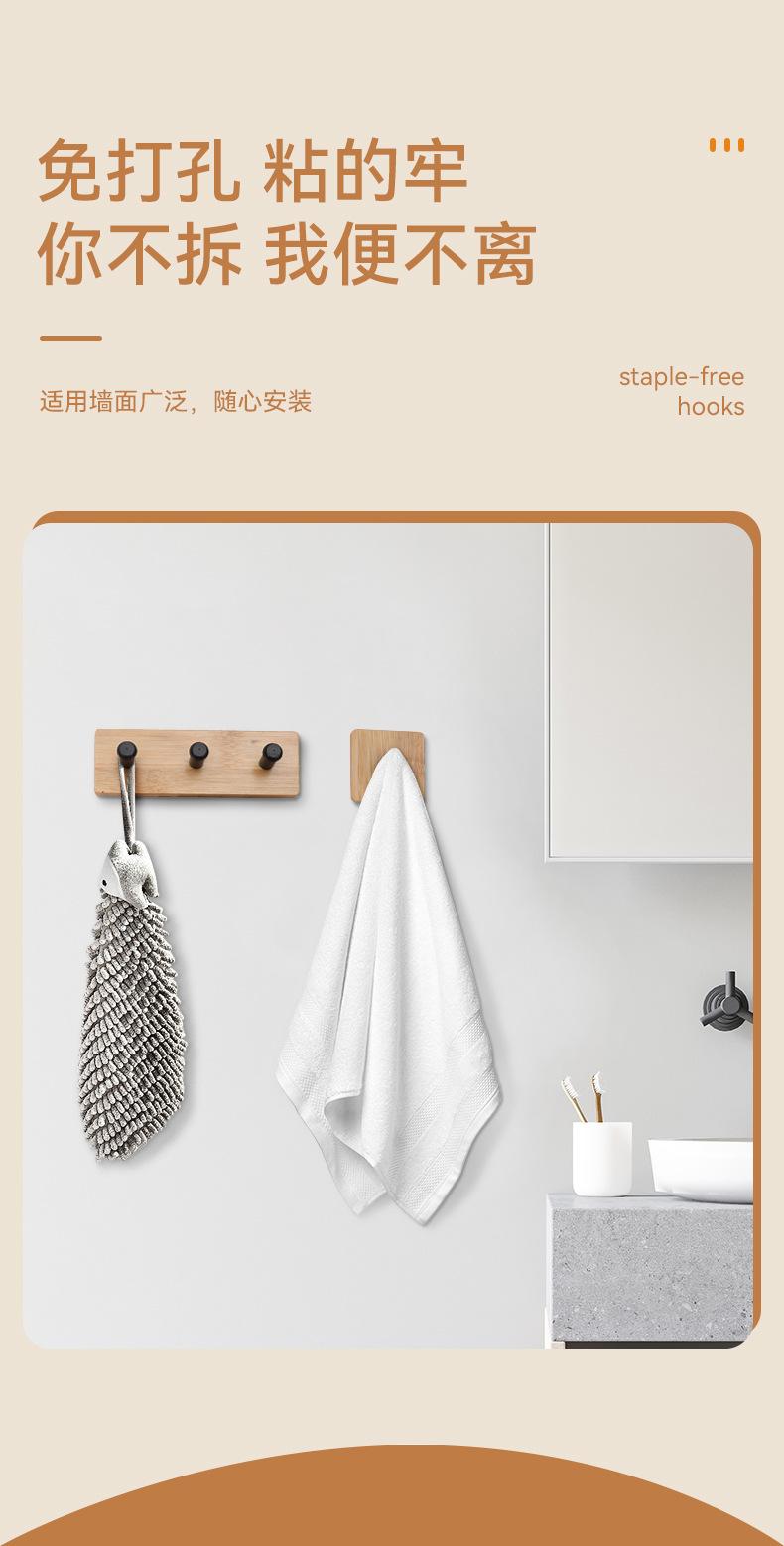 Gancho adhesivo de madera maciza sin perforaciones para puerta de entrada del hogar, gancho resistente para ropa, gancho de almacenamiento de acero inoxidable.