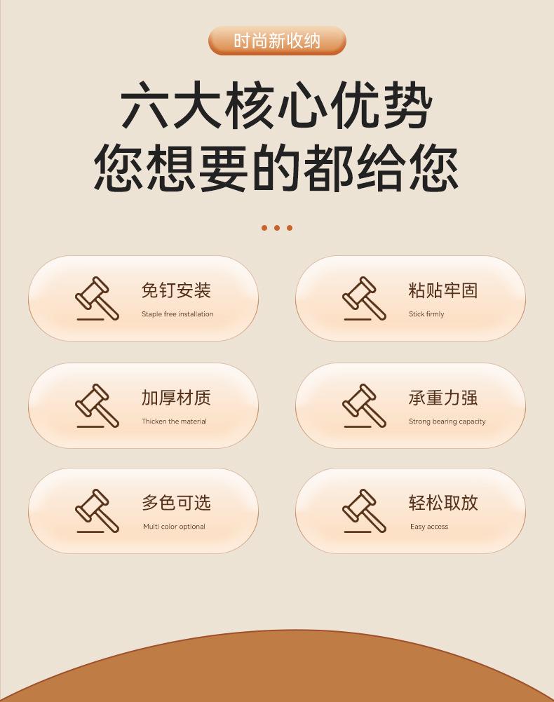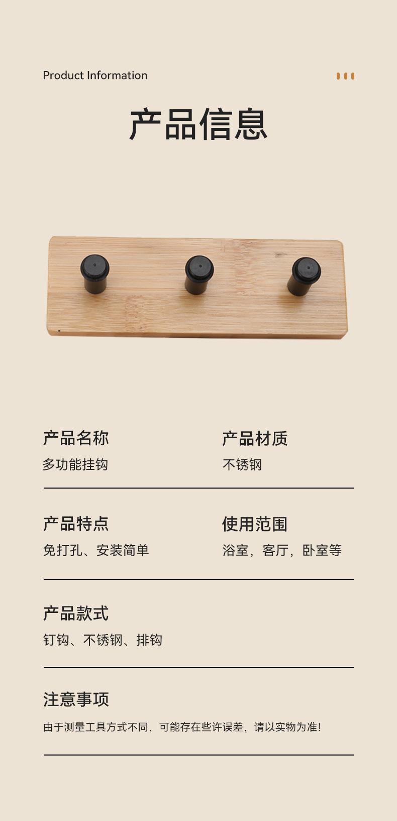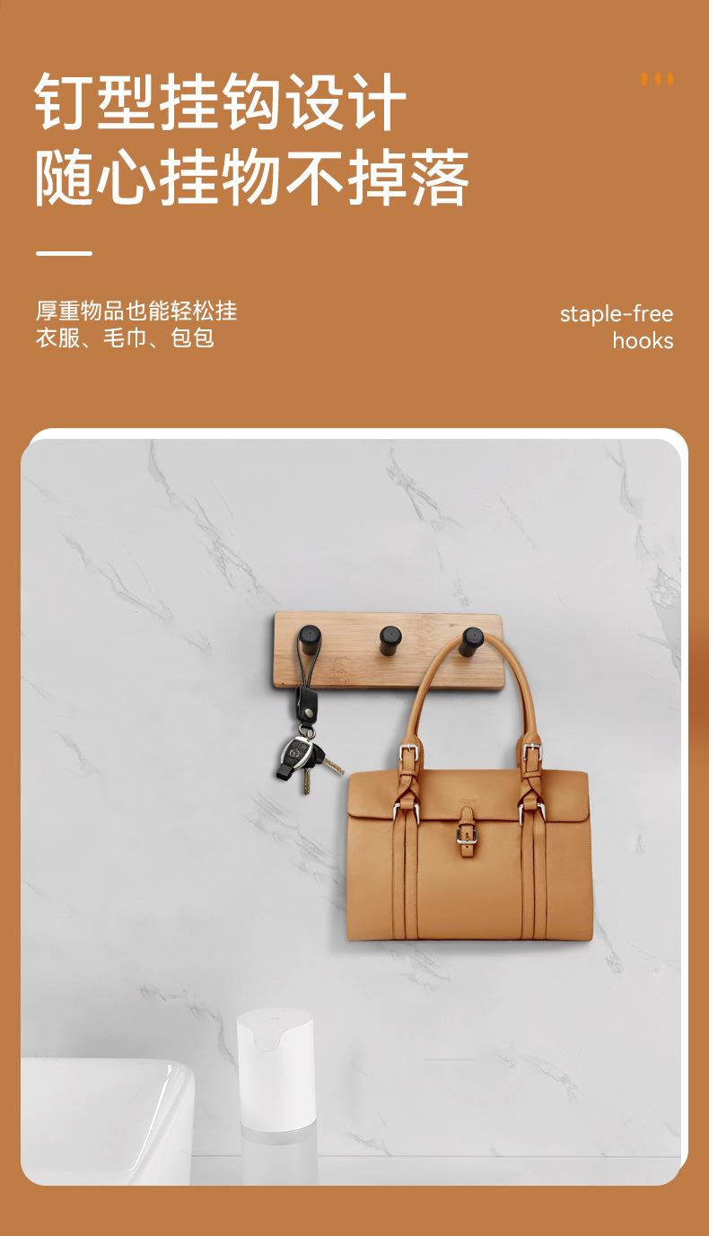 Gancho adhesivo de madera maciza sin perforaciones para puerta de entrada del hogar, gancho resistente para ropa, gancho de almacenamiento de acero inoxidable.