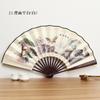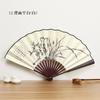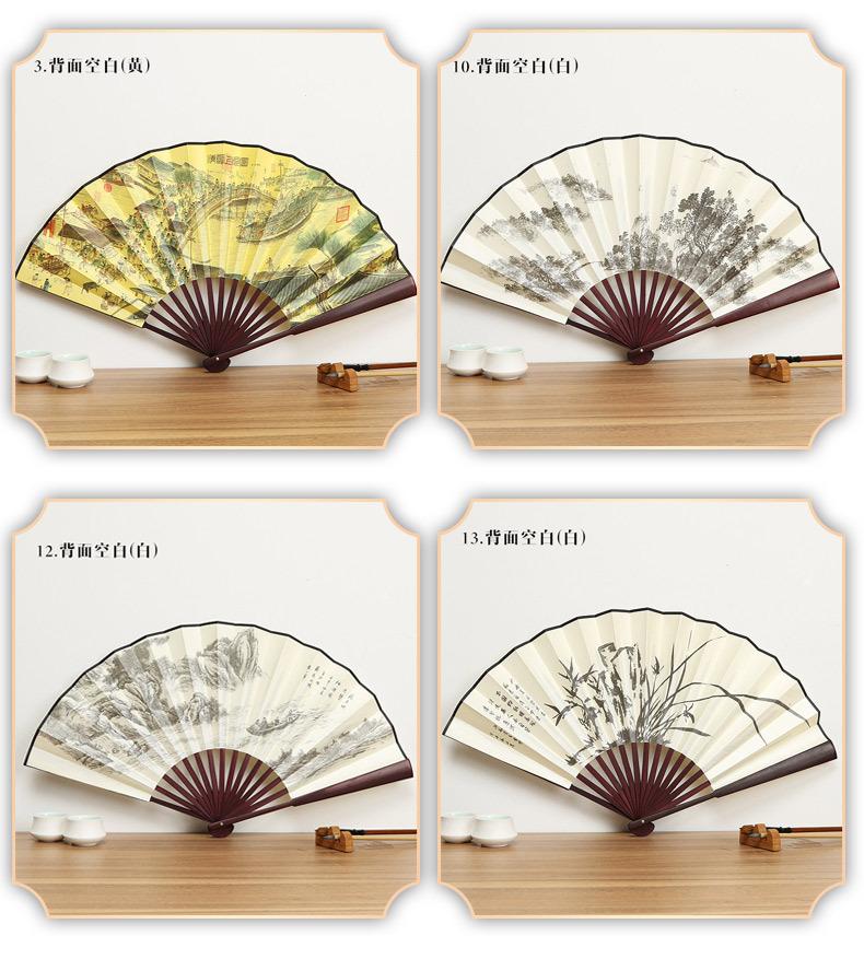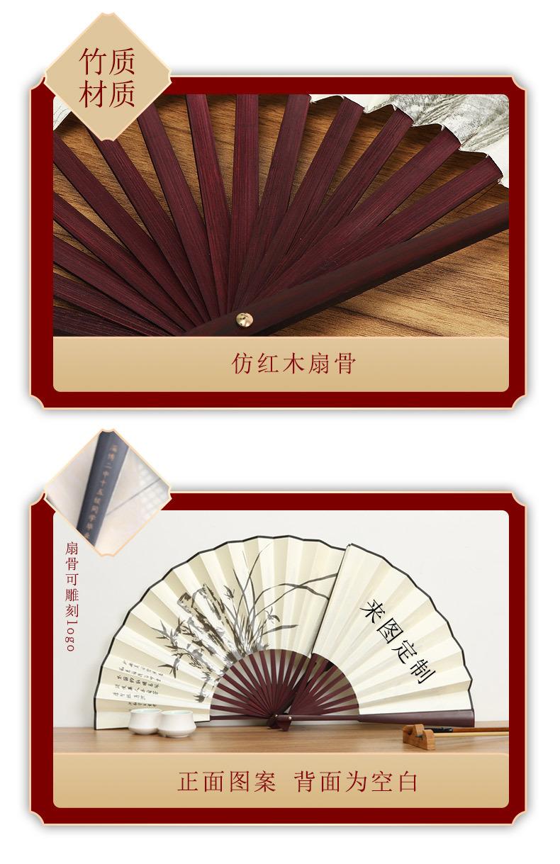 Abanico Hanfu de imitación de bambú y caoba, antiguo abanico plegable de estilo chino, abanico de seda de 10 pulgadas, abanico plegable de papel de arroz, abanico publicitario al por mayor