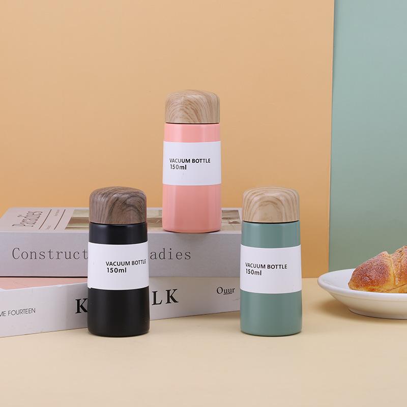 Mini Vaso de Bolsillo con Grano de Madera, Vaso de Agua Portátil de Acero Inoxidable 304 de Pequeña Capacidad, Vaso Aislado, Vaso Aislado Portátil