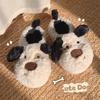 Zapatos de confinamiento cómodos con suela gruesa suave para mujer, otoño e invierno, forrados de felpa, cálidos, de punta cerrada, pantuflas de algodón, lindos perros de lunares, zapatos de algodón para el hogar