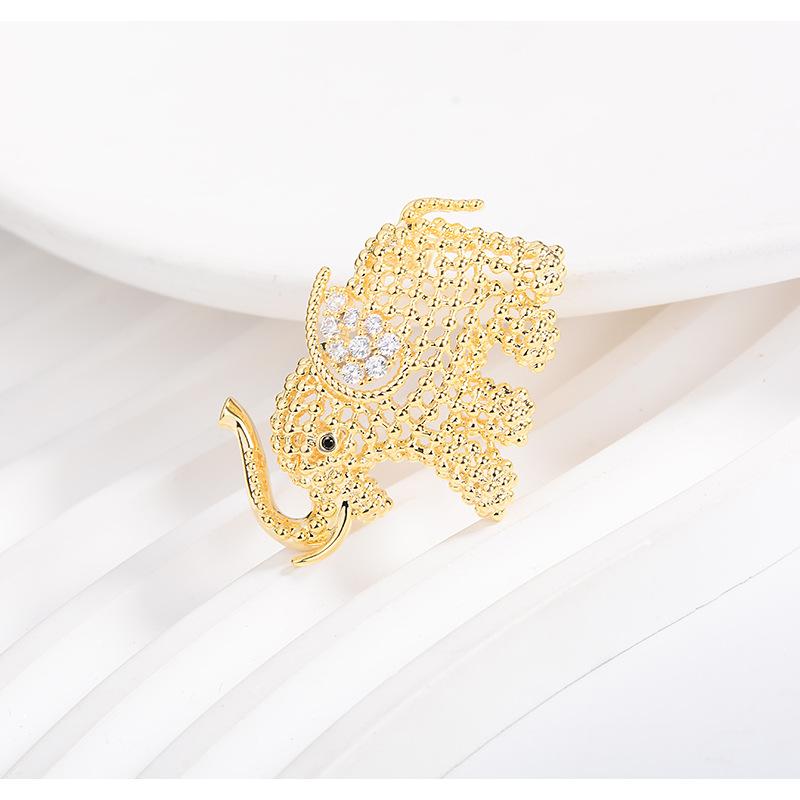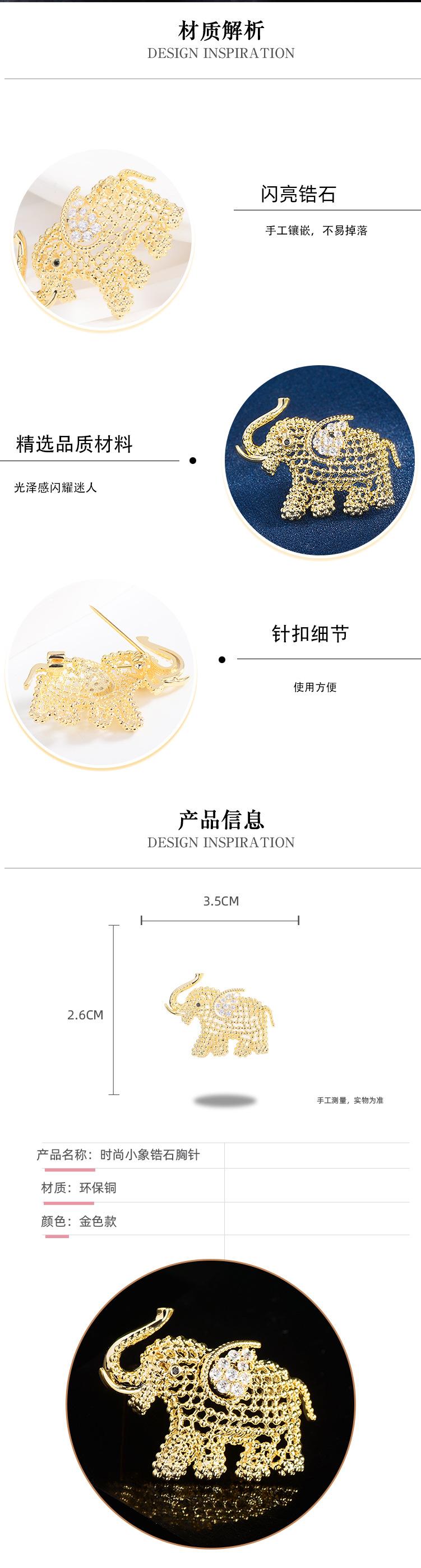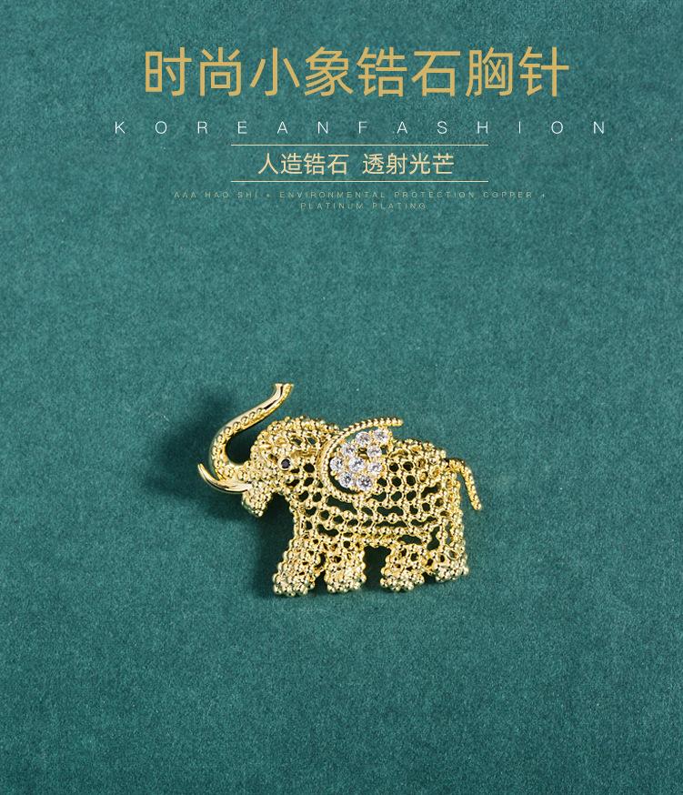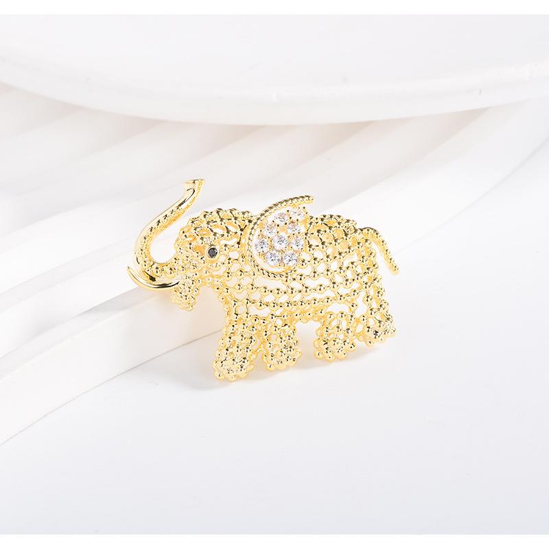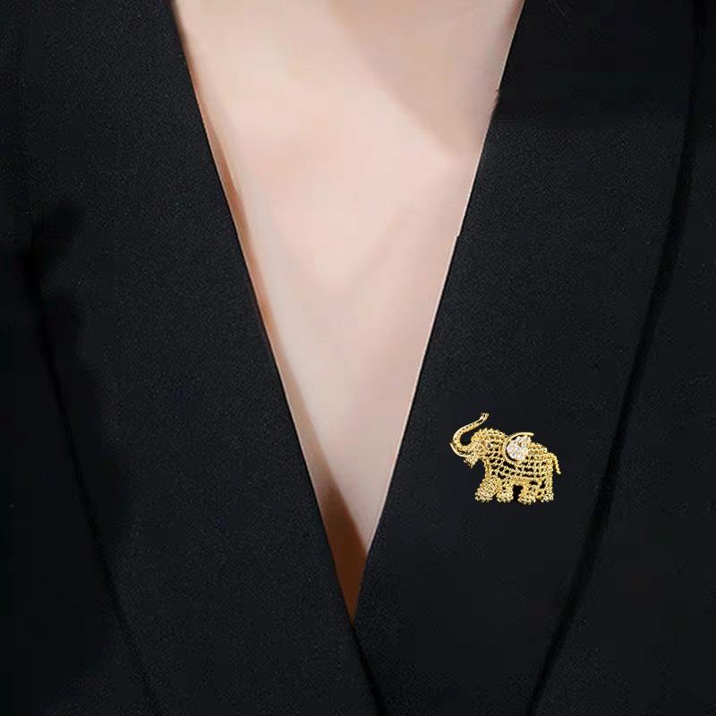 Símbolo de auspicioso Nuevo estilo broche de elefante de circonio incrustado fino chapado significado de prosperidad ramillete temperamento de alta gama accesorios para alfiler de ropa