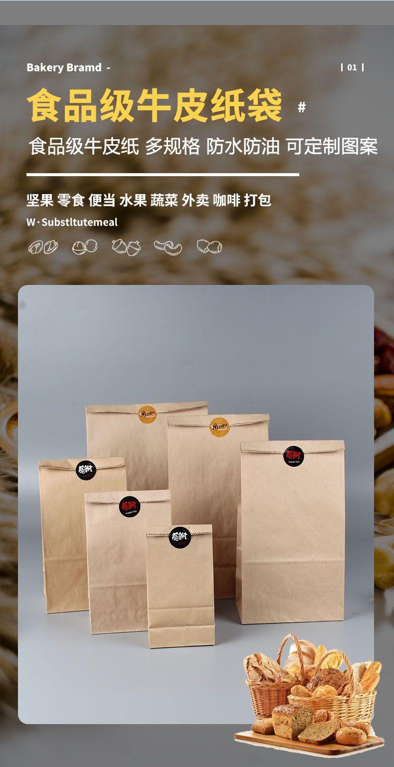 Bolsas Desechables de Papel Kraft, Bolsas para Empaque de Alimentos, Bolsas Personalizadas para Empaque para Llevar de Panadería, Bolsas de Papel a Prueba de Aceite, Bolsas de Papel Ecológicas