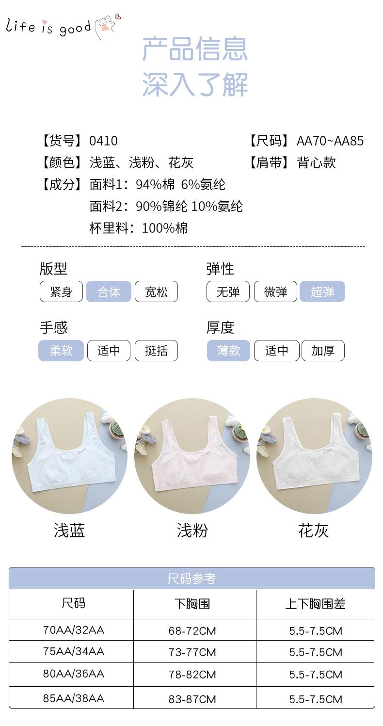 Ropa interior para niños y estudiantes de primaria de una etapa, período de desarrollo anti-golpes, 9-13 años, chaleco pequeño, cómodo, transpirable, sujetador para niña