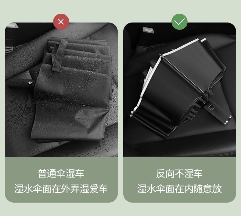 Paraguas inverso totalmente automático reforzado resistente al viento, soleado y lluvioso, paraguas solar de tres pliegues de doble uso para hombres, paraguas doble grande para automóvil al por mayor