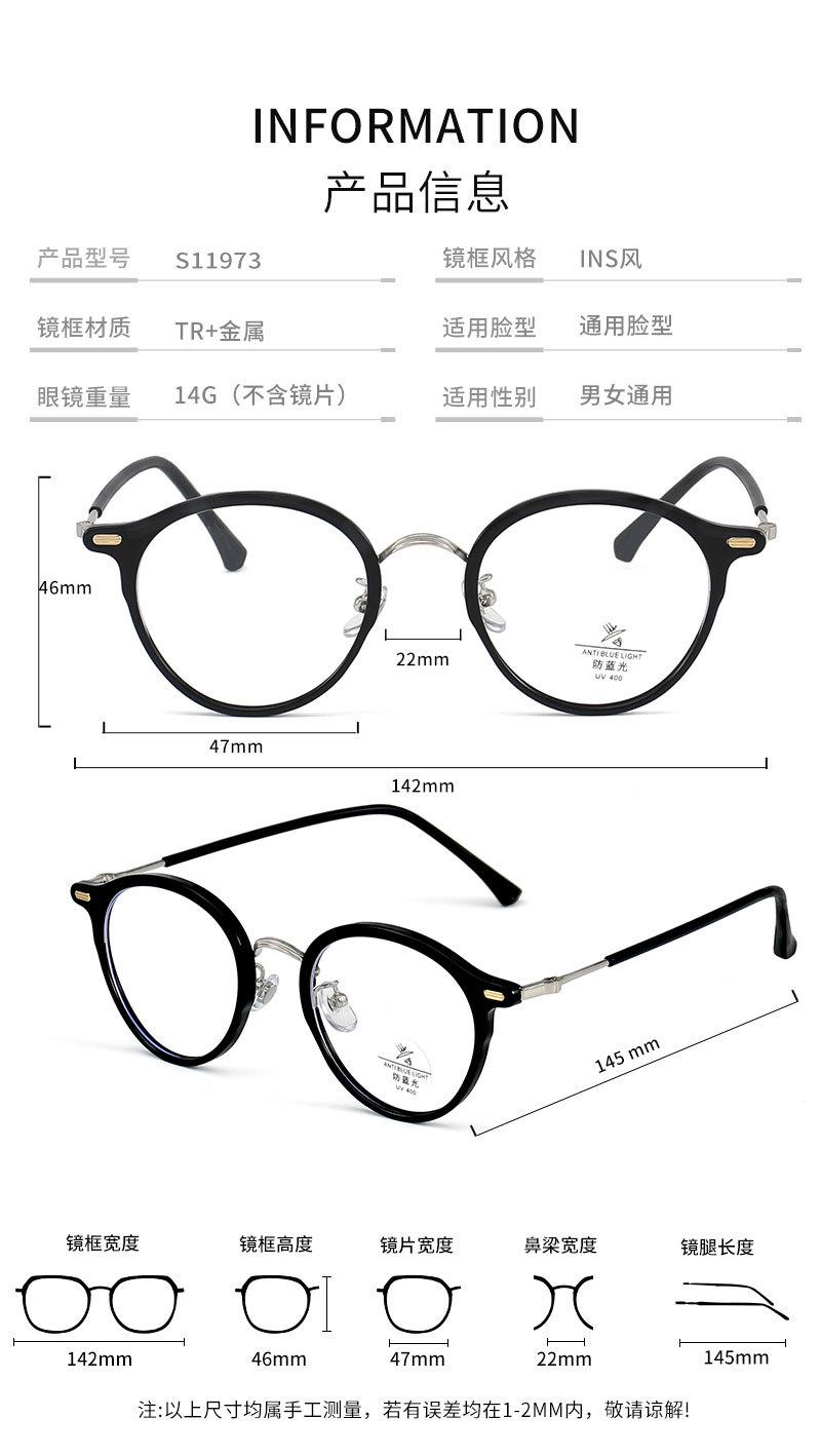 S11973 moda clásico redondo liso gafas celebridad de internet coreano retro anti-luz azul montura gafas hombres y mujeres mismo estilo montura