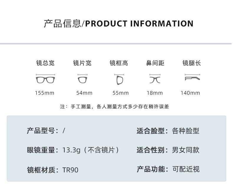Danyang gafas ojo de gato mujer anti luz azul retro montura de gafas lisas marrón frío miopía montura TR90 de alta gama ¥8.00 Compre ya | T7157 nueva versión coreana ins montura grande gafas para miopía hombres y mujeres montura cuadrada montura de gafas lisas sin maquillaje net red gafas delgadas ¥11.00 Compre ya | Nuevo estilo anteojos lisos estilo caliente moda callejera disparo transfronterizo ojo de gato Europeo y Americano montura óptica color degradado anti-luz azul TQ5740 ¥13.00 Compre ya | T7182 Versión coreana de montura redonda delgada ligera para miopía para mujer, maquillaje rojo Xiaohongshu literario, gafas planas de tendencia para hombre ¥12.00 Compre ya | ||