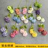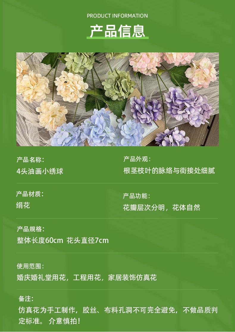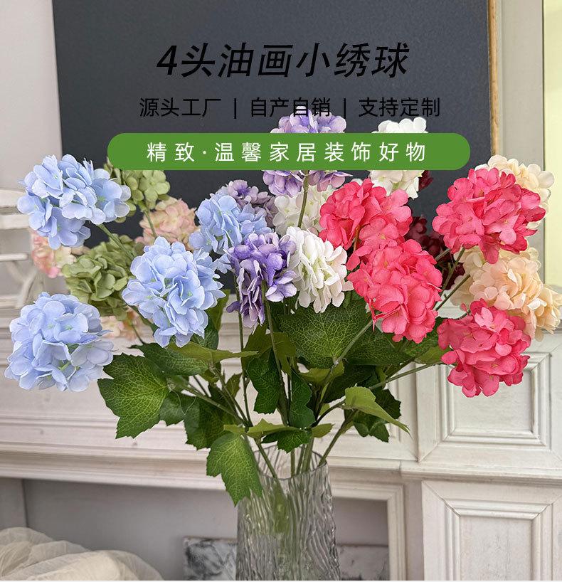Pintura al óleo de 4 cabezas, hortensia pequeña, flor artificial, accesorios de fotografía para bodas al aire libre, decoración de flores para el hogar y la sala de estar, personalización de flores.