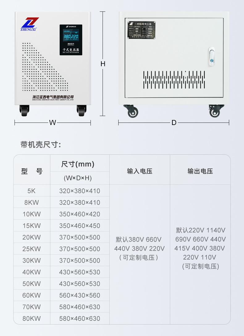 Zhengxi Exportación Transfronteriza 100Kva Elevador y Reductor 380V a 220V Almacenamiento de Energía Grado Industrial Trifásico Transformador Seco