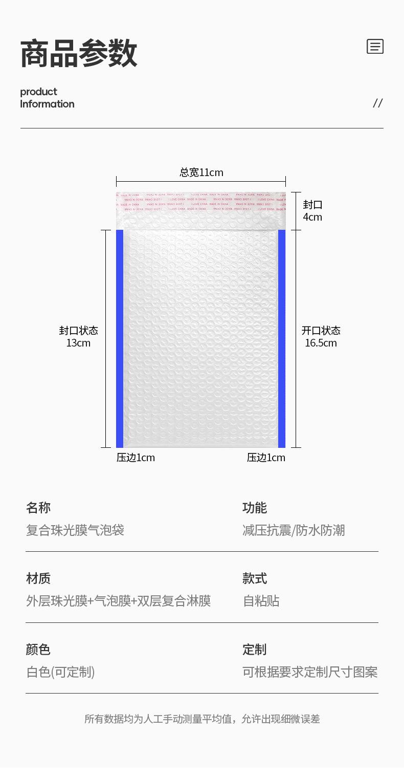 Bolsa de burbujas de película perlada compuesta blanca, bolsa autoadhesiva larga, bolsa de embalaje, material de embalaje, bolsa exprés, bolsa de sobre a prueba de golpes