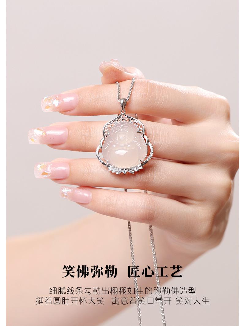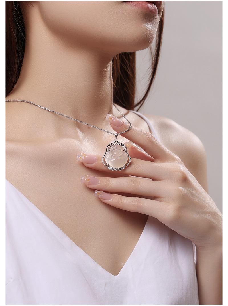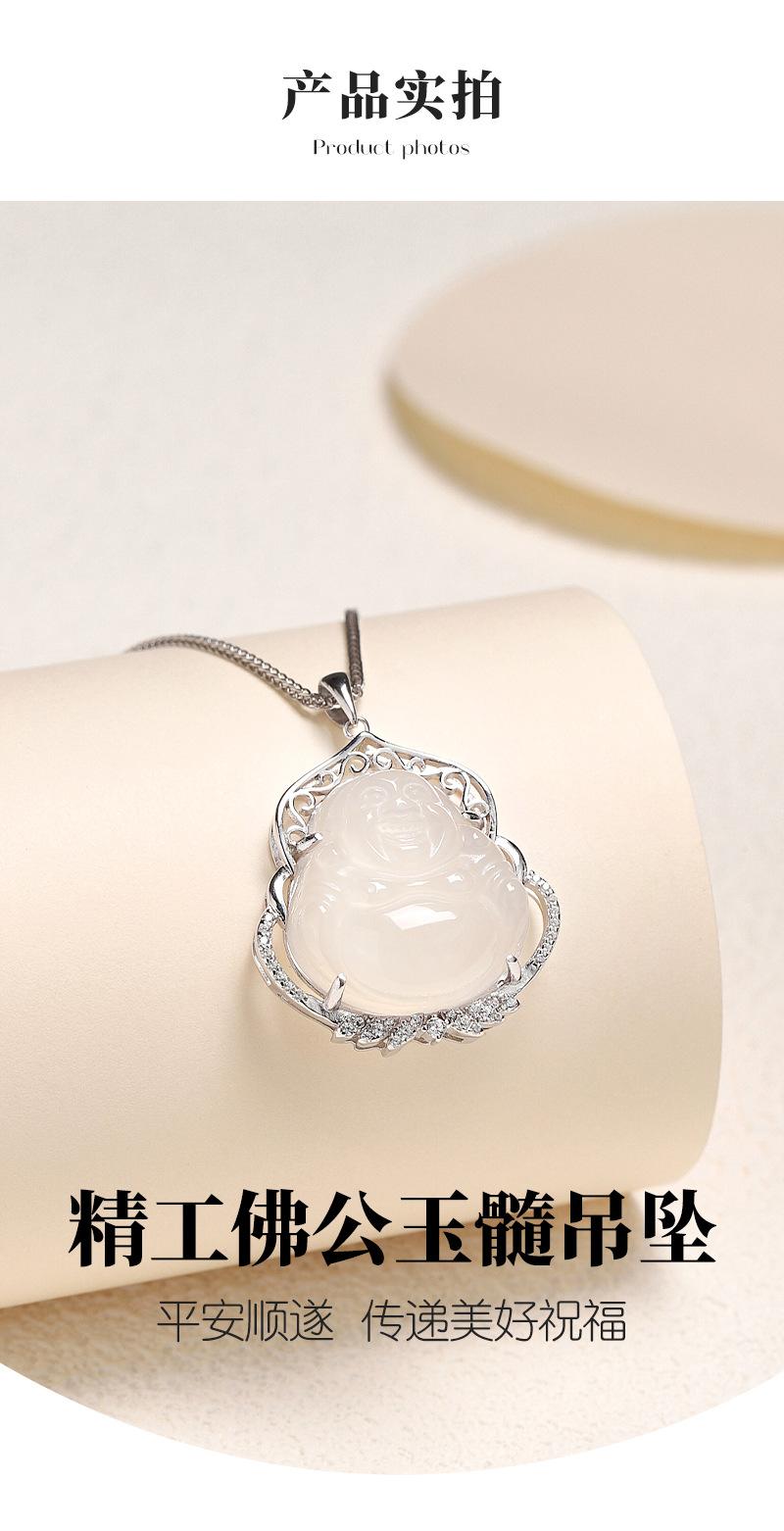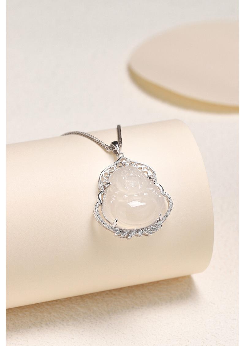 S925 sterling silver white chalcedony Buddha pendant 6.8g (without chain), S925 sterling silver Chopin chain m...