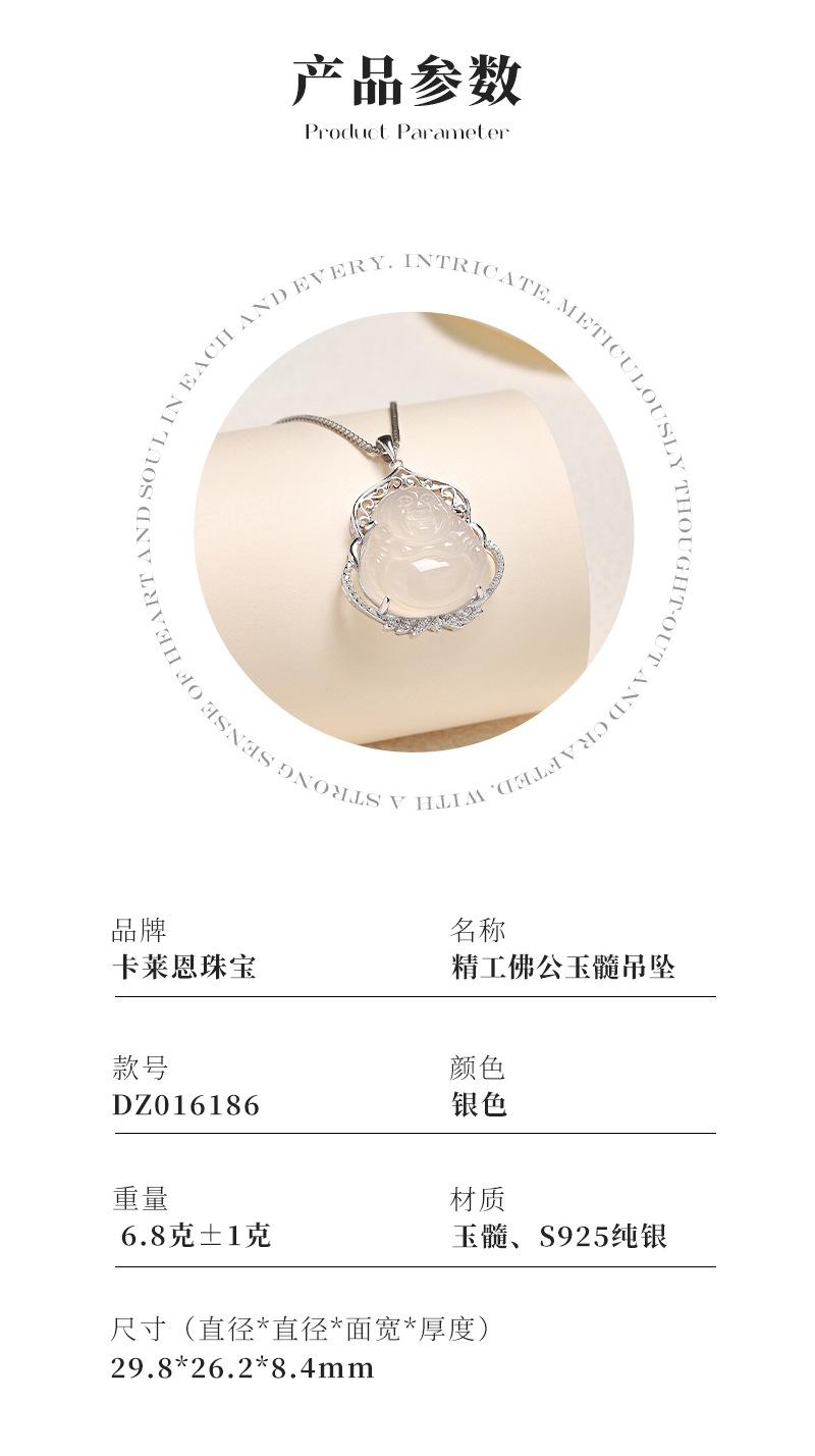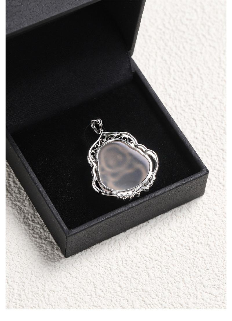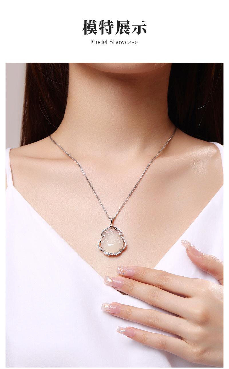 S925 sterling silver white chalcedony Buddha pendant 6.8g (without chain), S925 sterling silver Chopin chain m...