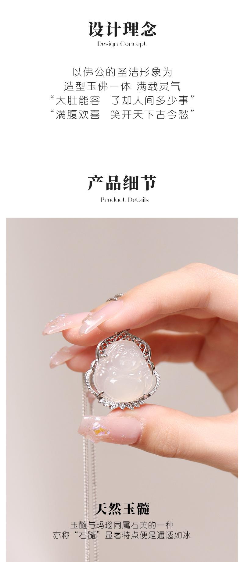 Colgante de calcedonia de hielo alto de plata esterlina S925 de Buda, moda nacional, nicho, cadena de clavícula de Buda Maitreya, collar de Buda de gran barriga, regalo
