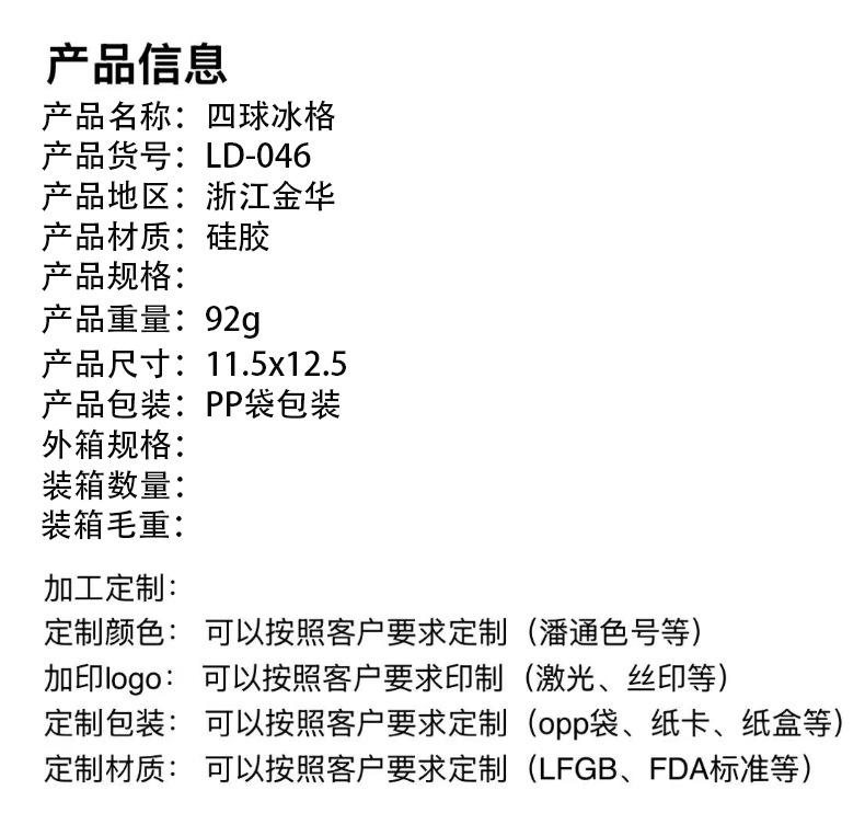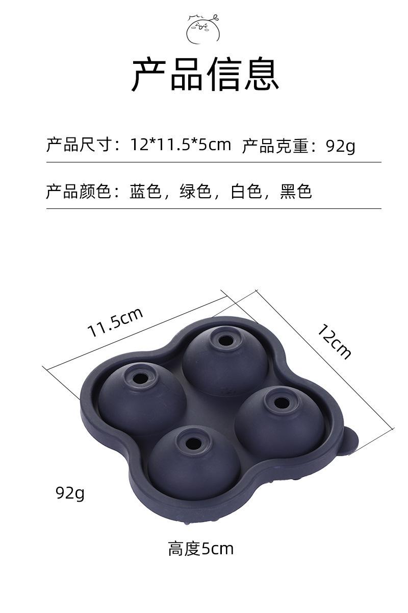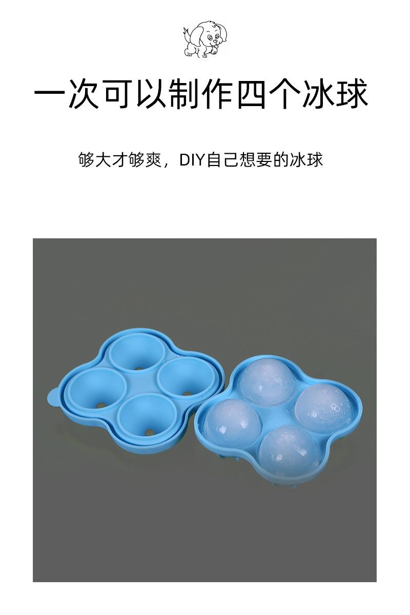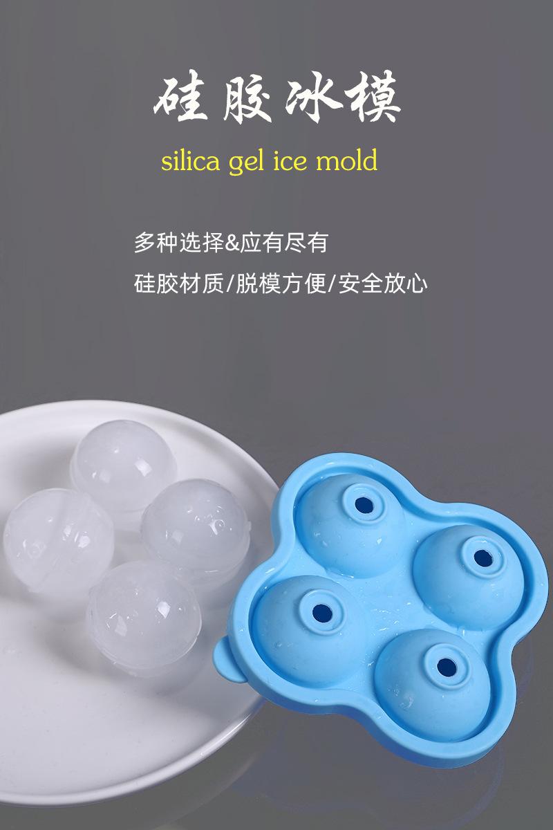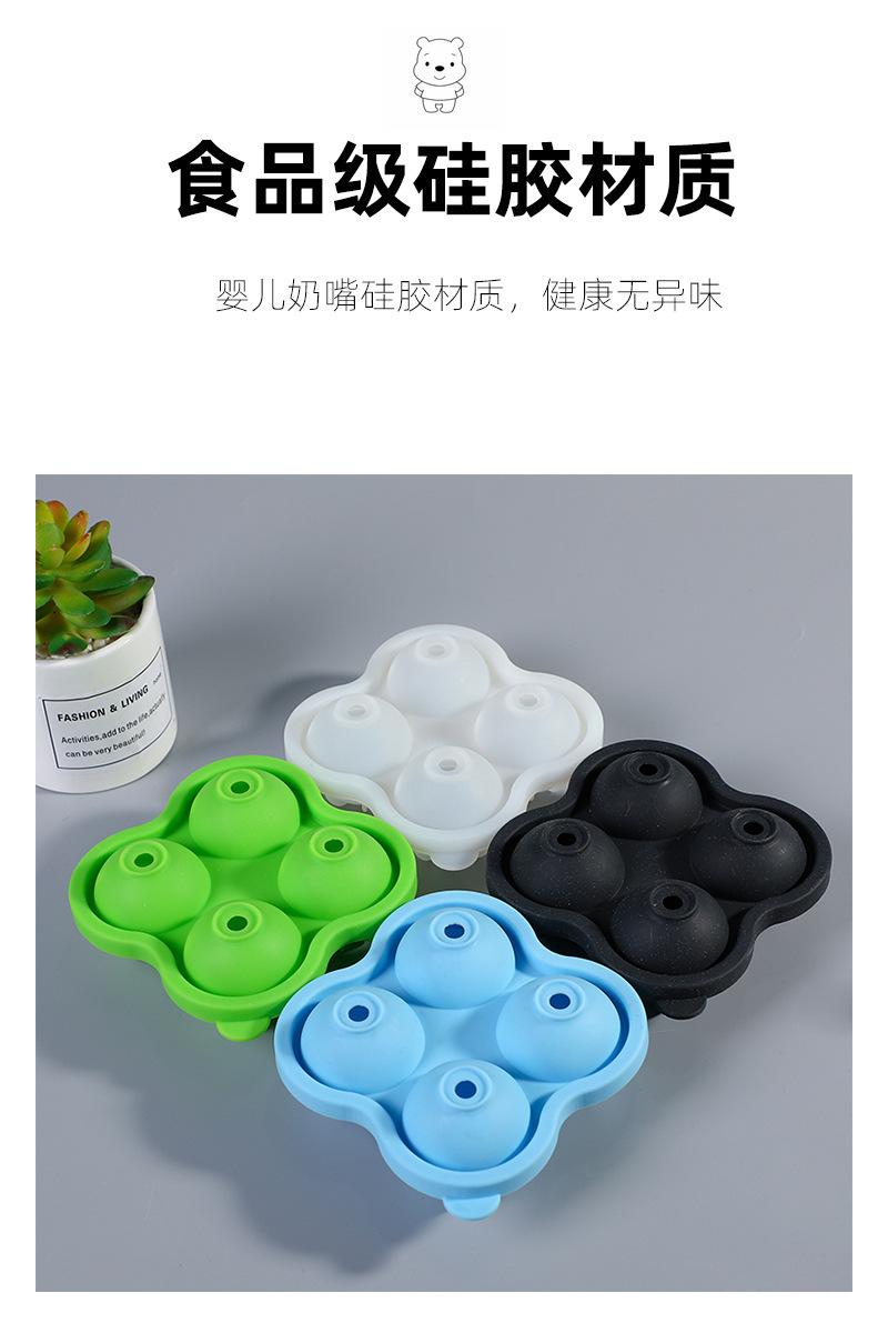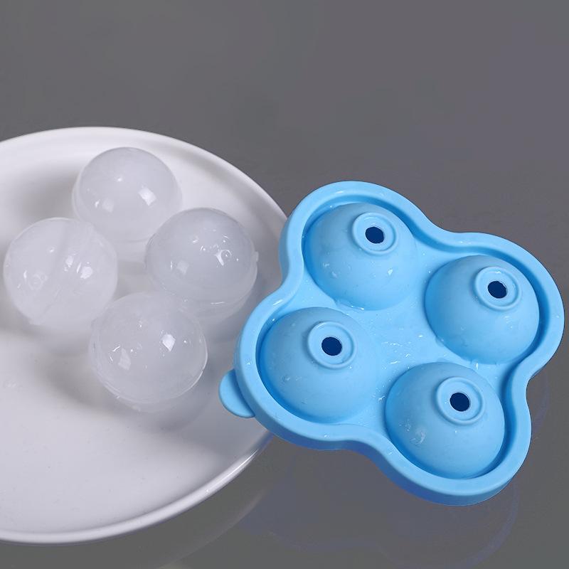 Bandeja de hielo de silicona de cuatro bolas, popular en Amazon. Bandeja de hielo casera para whisky. Molde de hielo de cuatro bolas congelado rápidamente, hecho a mano. Venta al por mayor.