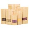Bolsa de papel kraft con ventana esmerilada gruesa, autosellante, para alimentos, frutos secos, frutos secos, té sellado