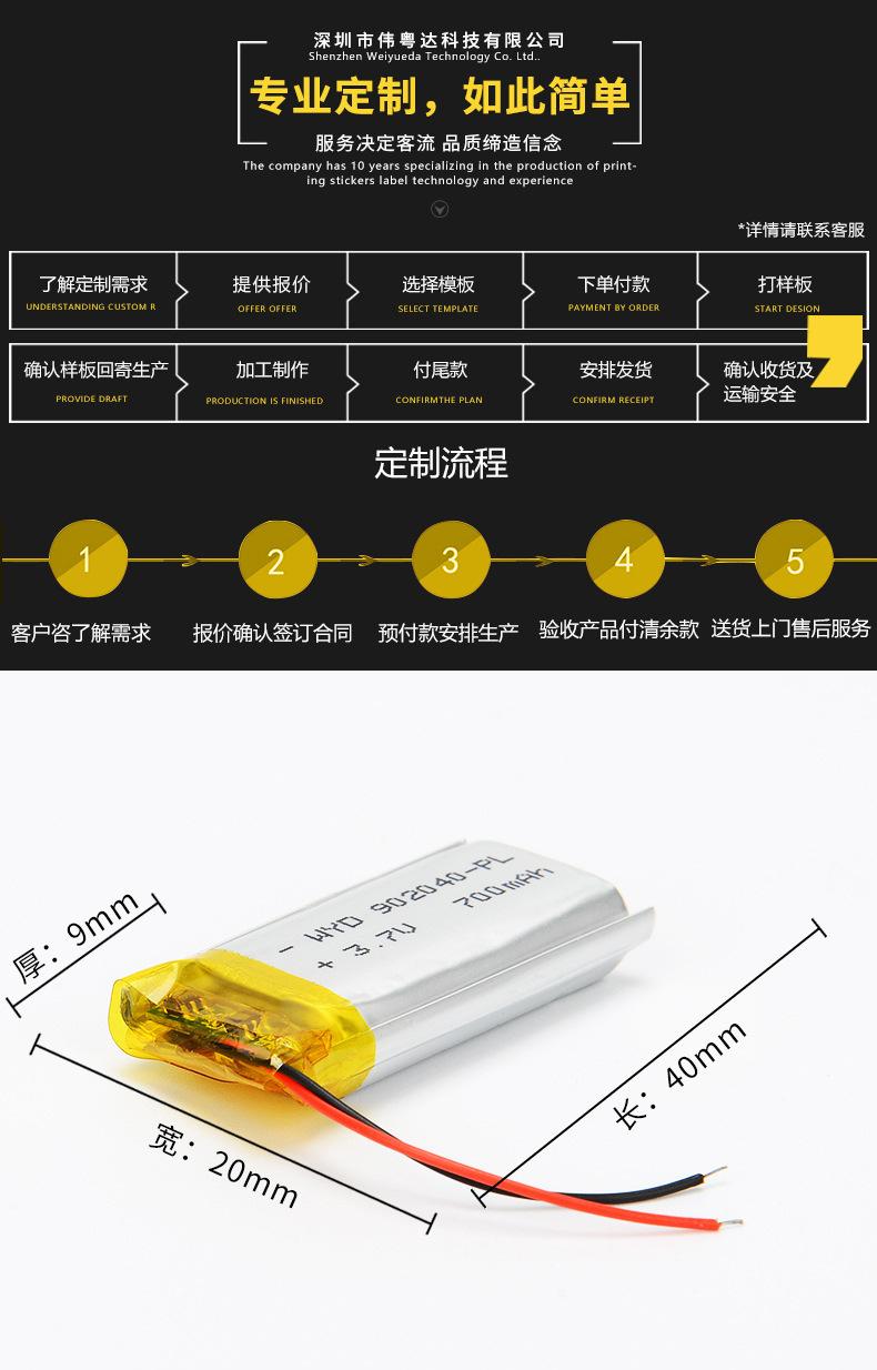 Dado que las baterías de litio tienen una amplia gama de aplicaciones y vienen en muchos tamaños y especificaciones, comuníquese con el servicio al cliente para explicar los requisitos de la batería antes de realizar un pedido, como especificaciones de tamaño, requisitos de capacidad, si agregar placas o cables separados, requisitos de salida, tasa de uso, temperatura, tiempo de entrega, etc.