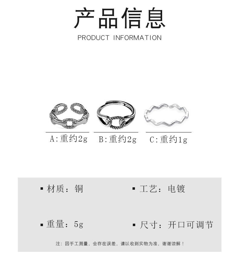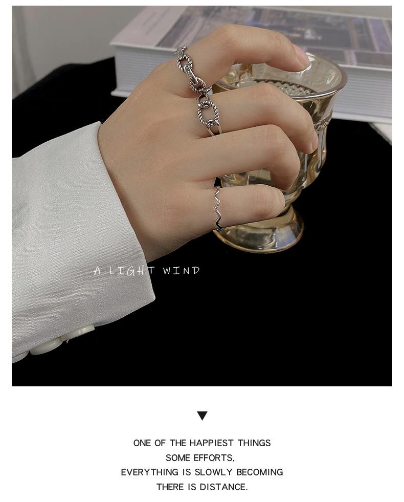 Set de tres anillos de estilo ins coreano de estilo frío, ajustables, huecos, geométricos, simples, elegantes, retro, trenzados, para los dedos
