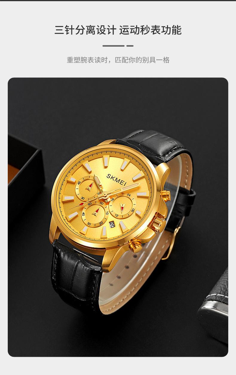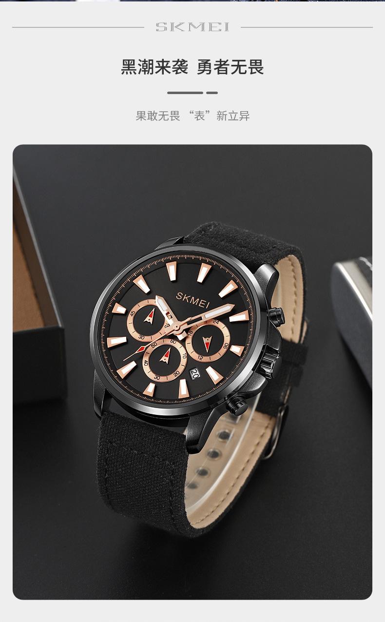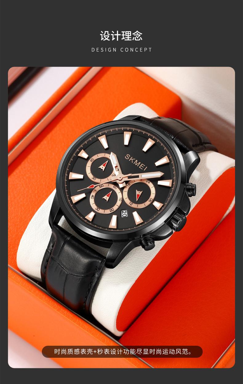 Reloj Skmei para hombre, reloj de cuarzo con correa, reloj impermeable, cronómetro multifunción, reloj redondo de moda para hombre.