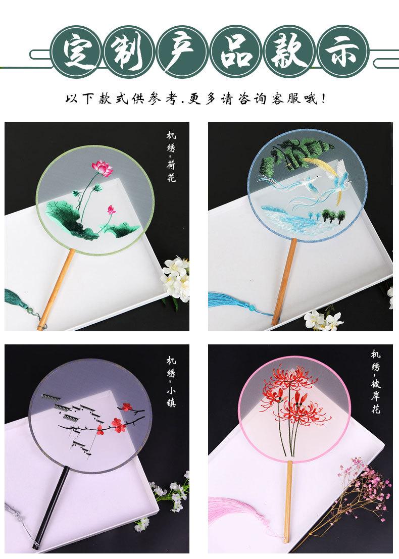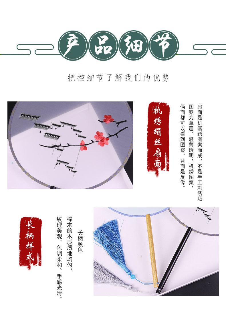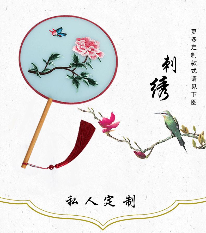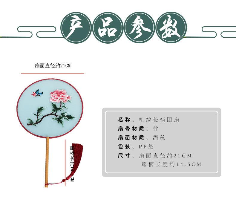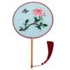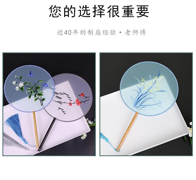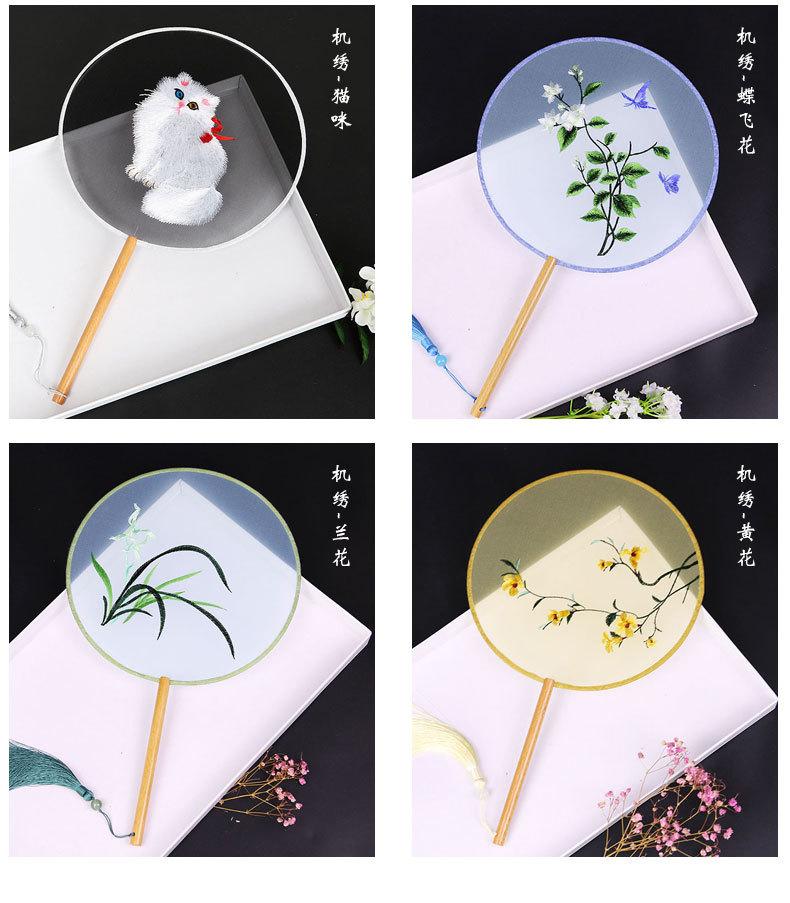 Abanico redondo bordado, abanico de palacio de danza, accesorios de estilo chino, cheongsam, Hanfu, mango mediano y largo, abanico antiguo de medio año al por mayor