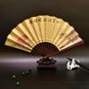 Abanico de regalo con logotipo impreso y grabado en tela de seda estilo antiguo, abanico de hombre de imitación caoba de 10 pulgadas, abanico plegable artesanal de bambú, venta al por mayor
