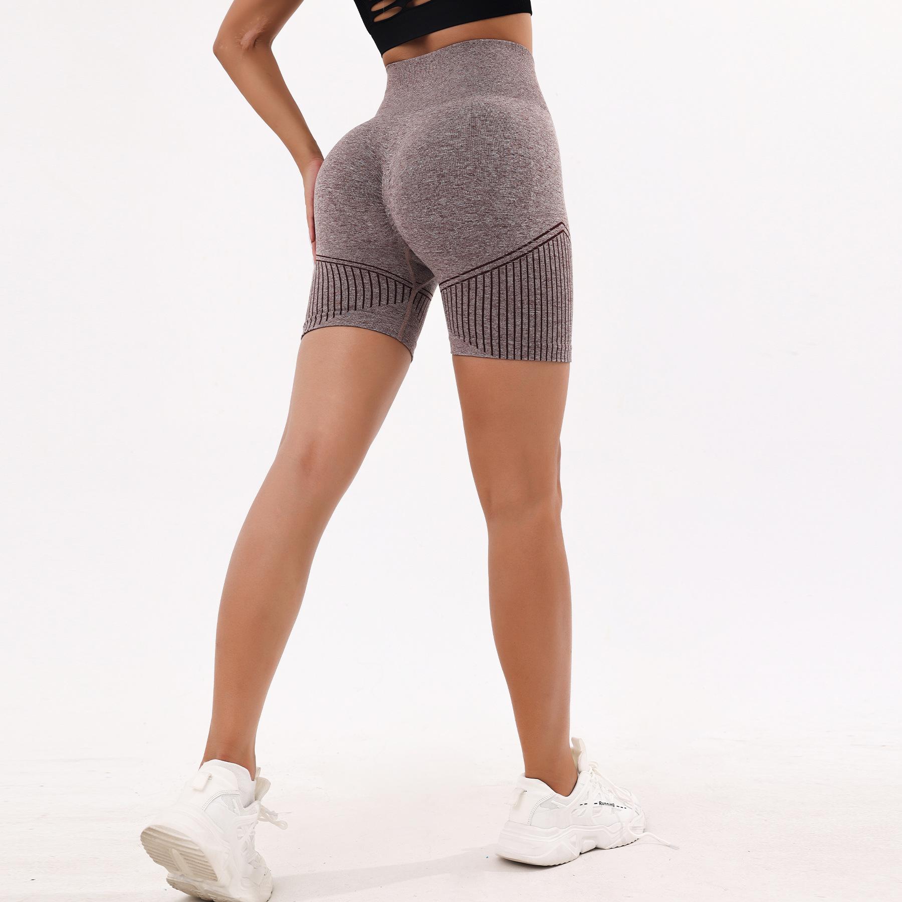 [Modelo de Muestra] Shorts Deportivos Ajustados Sin Costuras Transfronterizos Europeos y Americanos para Correr y Fitness para Mujer, Cintura Alta, Levanta Glúteos, Yoga