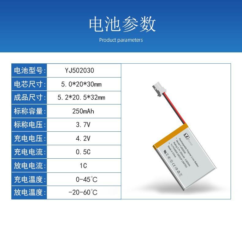 Batería de polímero de litio YJ 502030 de 3,7 V y 250 mAh para localizador GPS de instrumentos de belleza, certificación KC