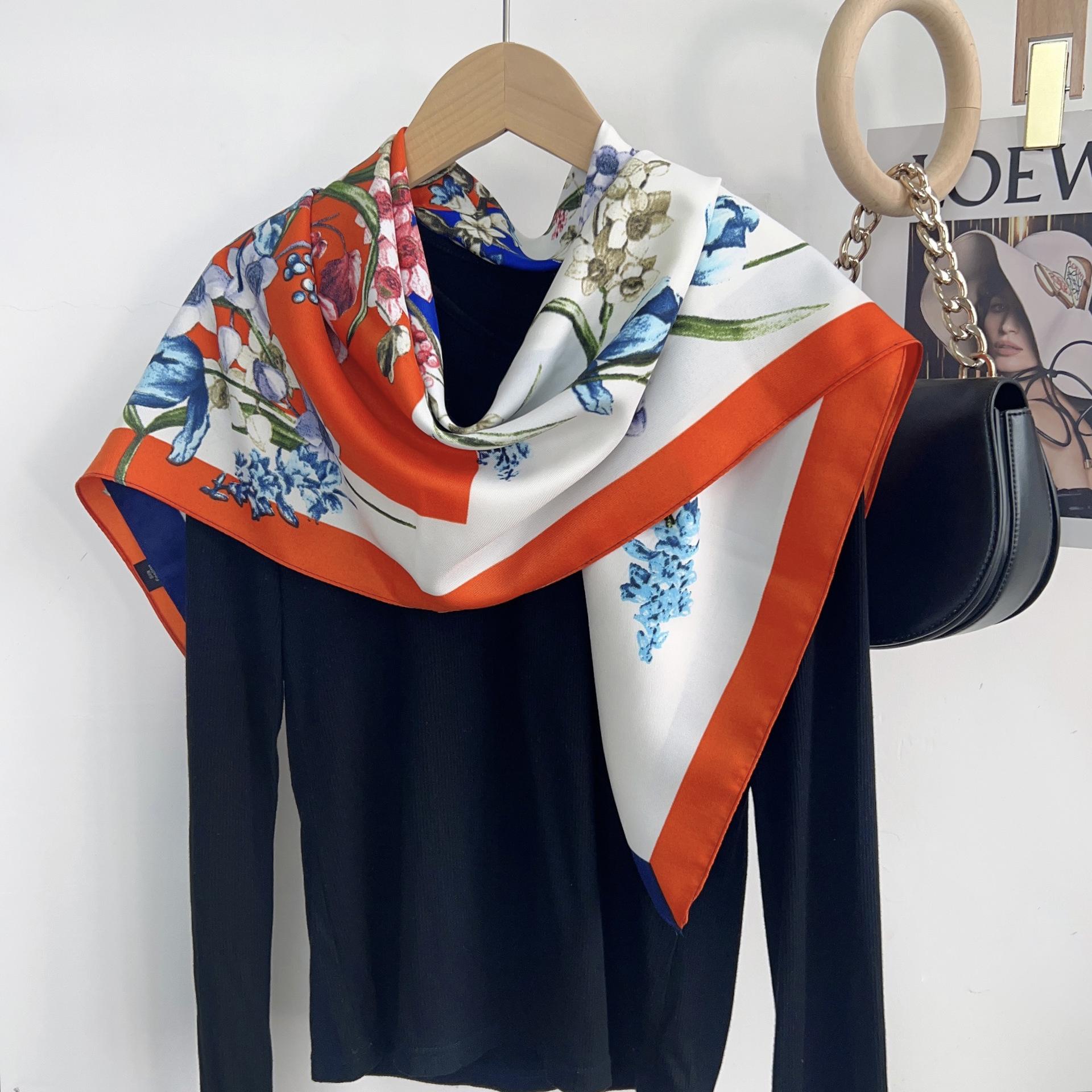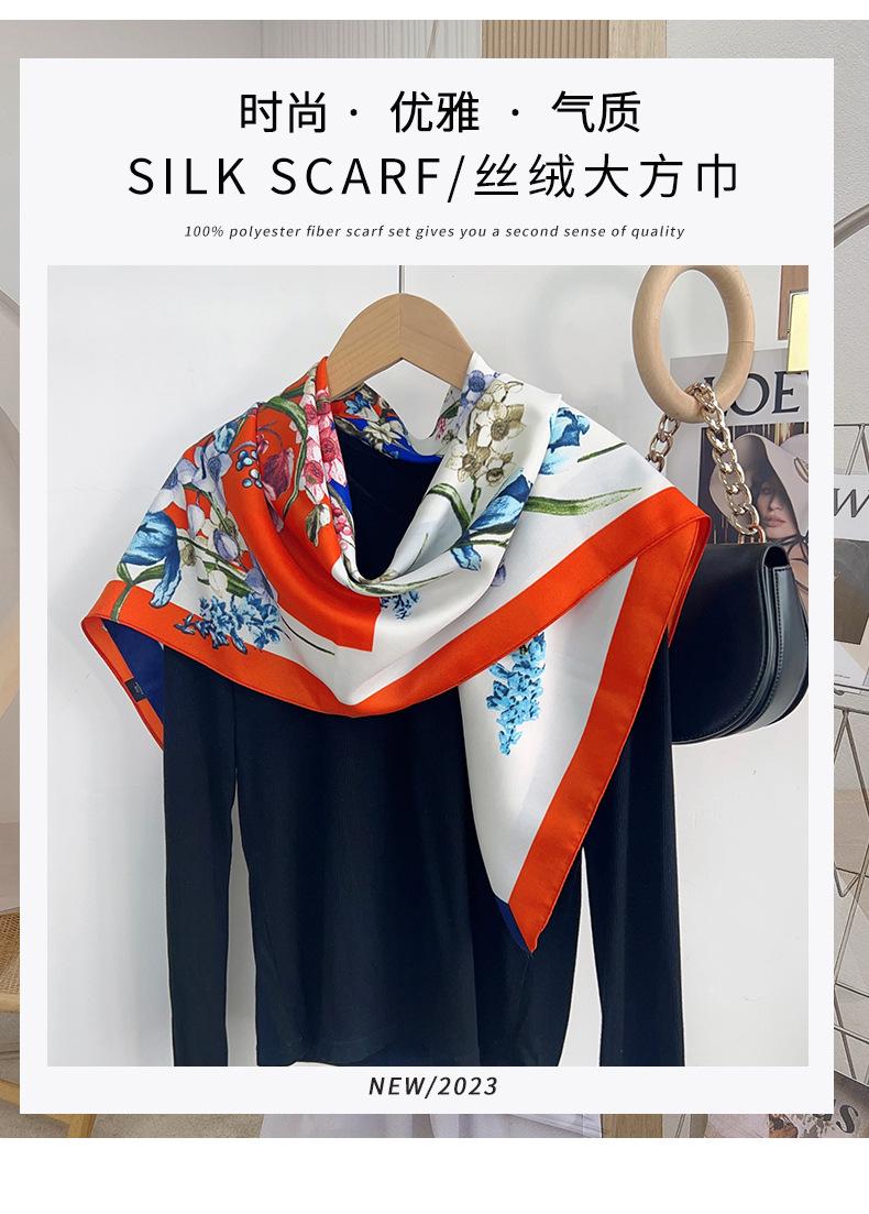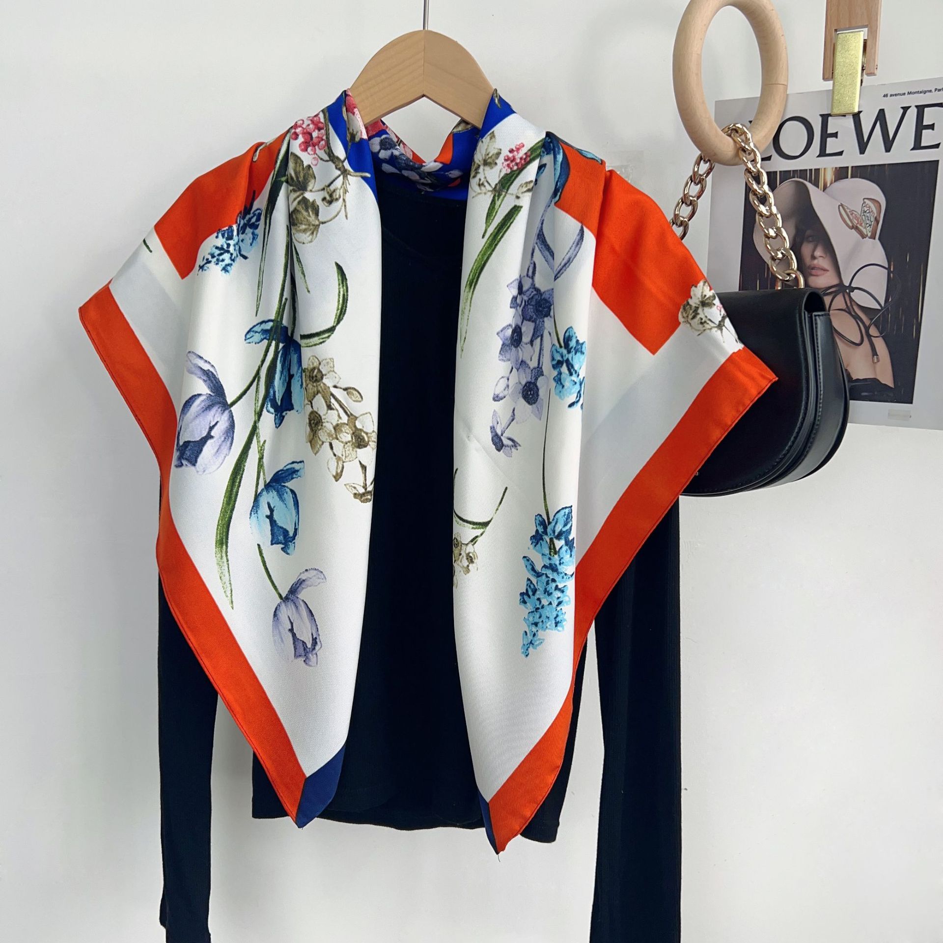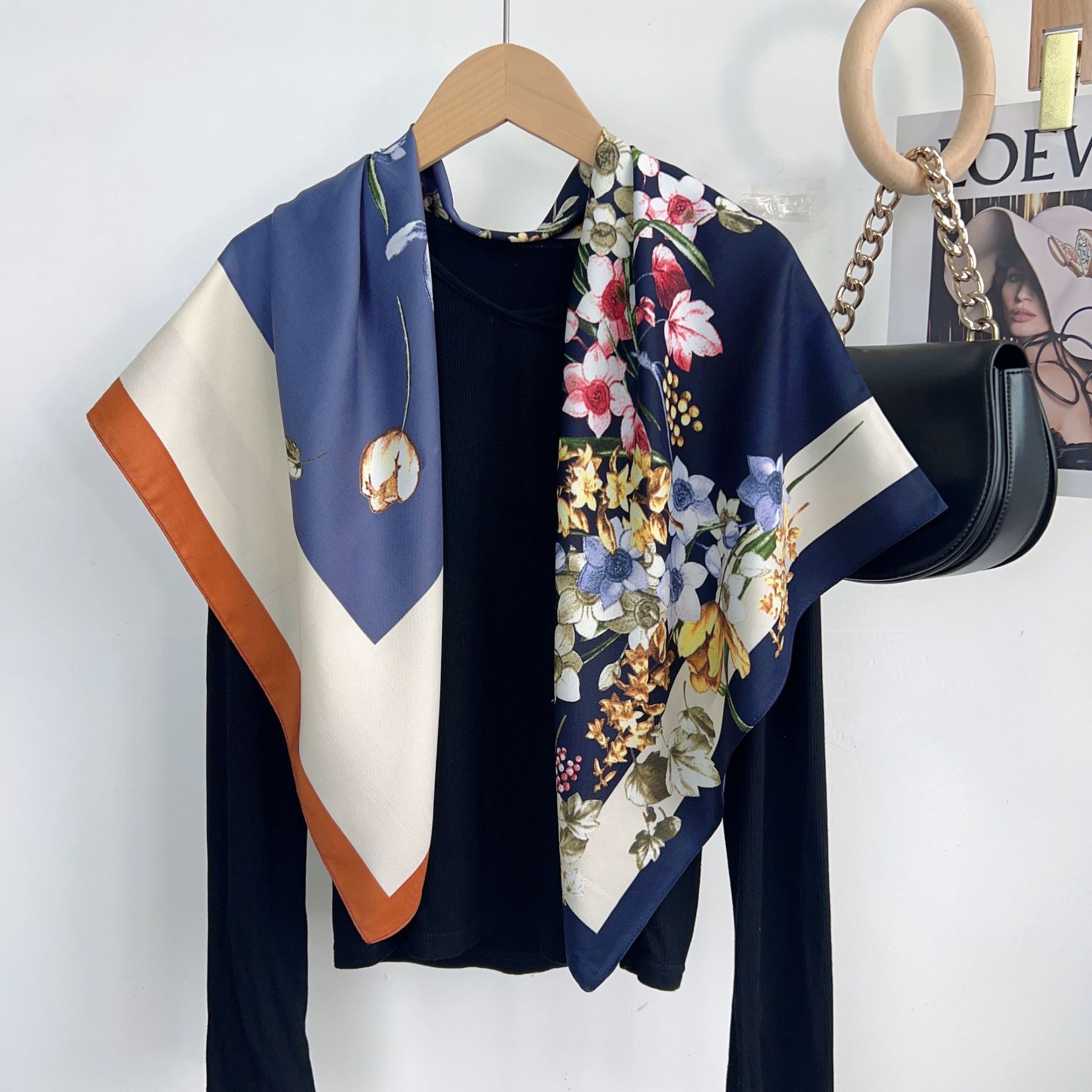 Bufanda de Seda Floral de Moda Estilo Coreano para Mujer 2025 Nuevo Estilo Lazo para el Cabello Pañuelo para la Cabeza Verano Viaje Playa Protección Solar Bufanda Cuadrada Grande