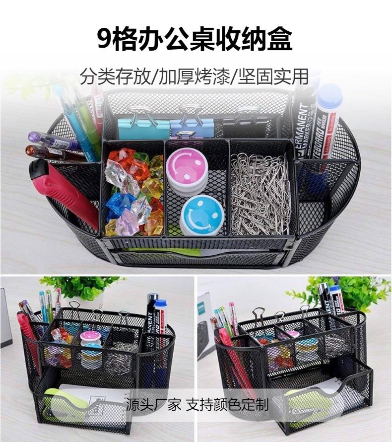 Malla Metálica de Hierro Transfronteriza Multifuncional Creativo Portalápices Papelería Suministros de Oficina para Supermercado Caja de Almacenamiento de Escritorio Portalápices de Nueve Compartimentos