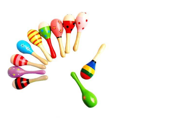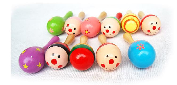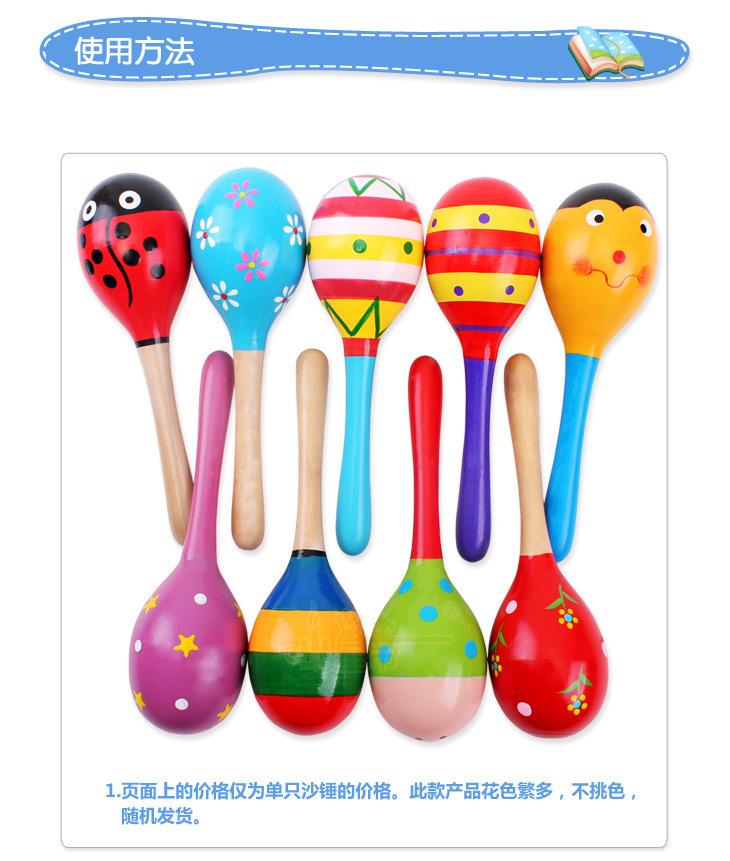 [Nombre del bebé]: Maraca grande para practicar el agarre y golpear sonajeros de madera bolas de arena de dibujos animados juguetes educativos para bebés