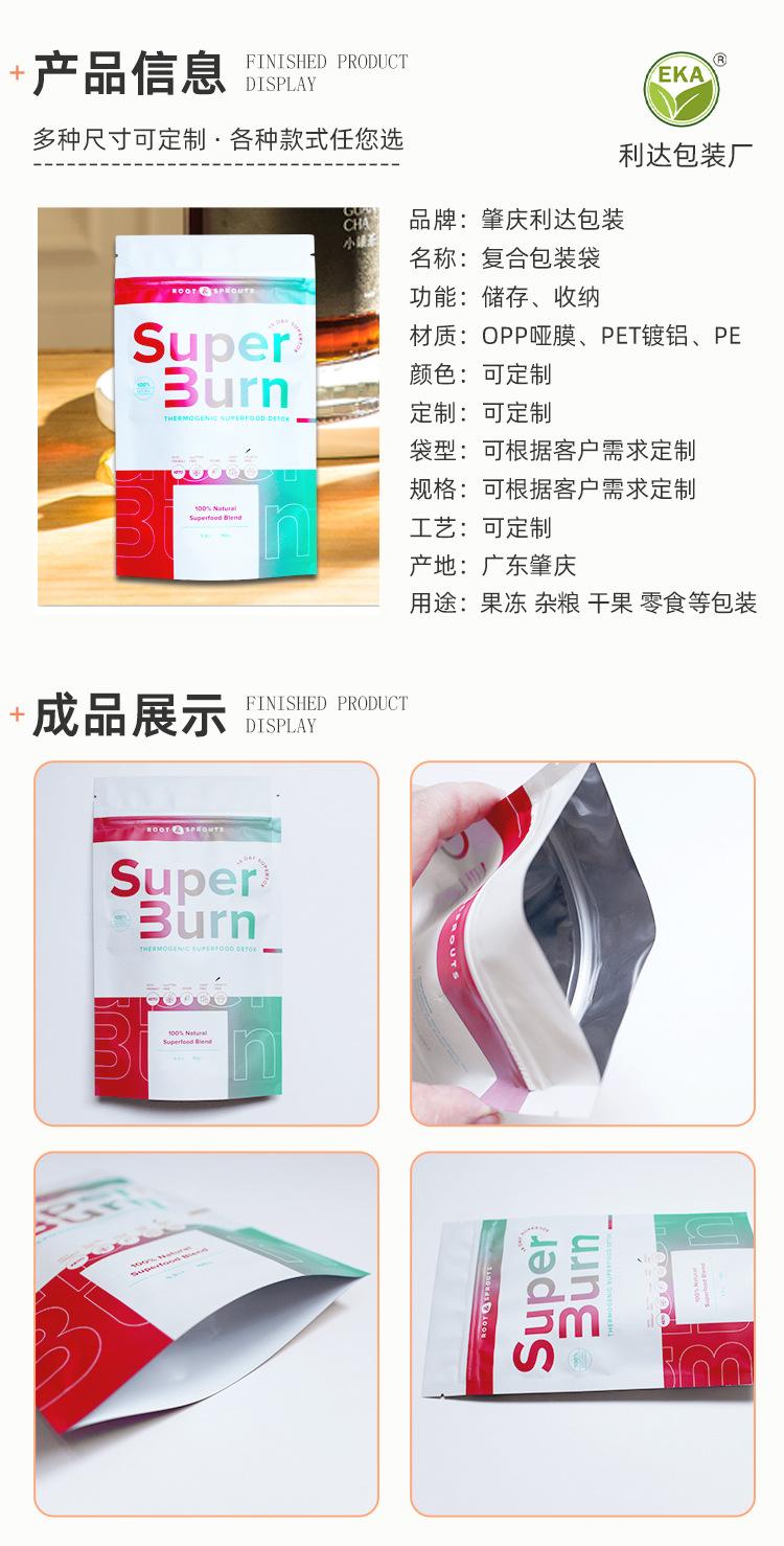 Super bolsa de embalaje de alimentos de fábrica bolsa compuesta aluminizada al por mayor impresión de patrones color bolsa autosoportada autosellable