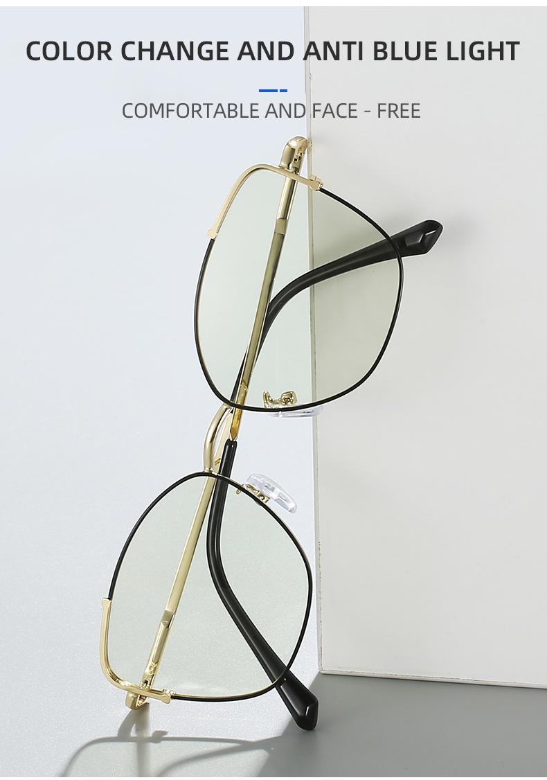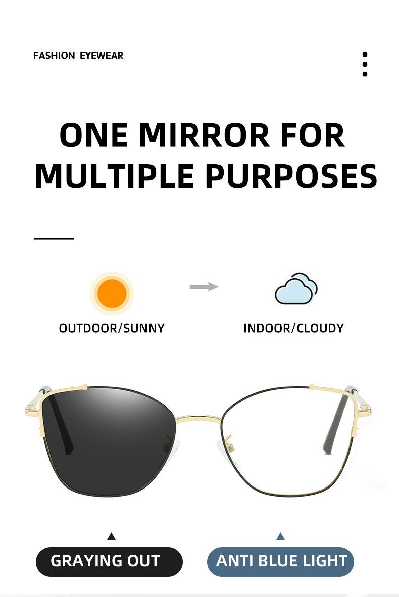 Gafas de seda dorada para mujer, montura de gafas de verano, gafas de sol lisas, gafas de sol pequeñas con forma de libro rojo, gafas de metal del mismo estilo que cambian de color con luz anti-azul.