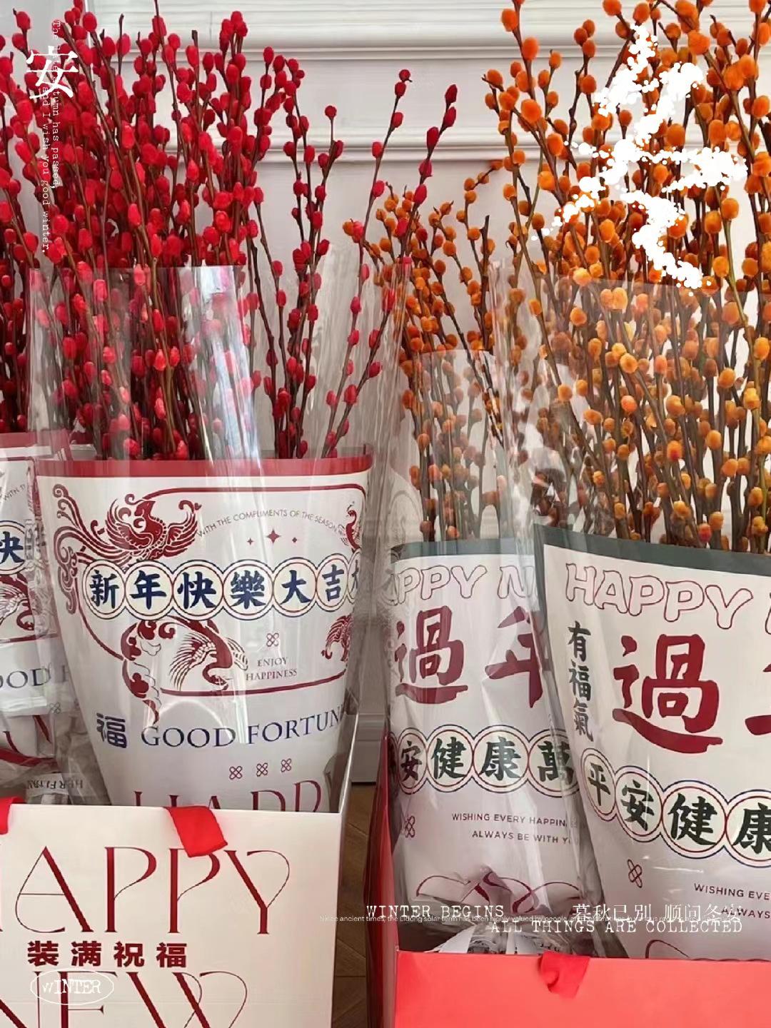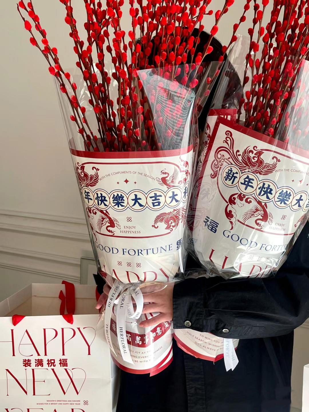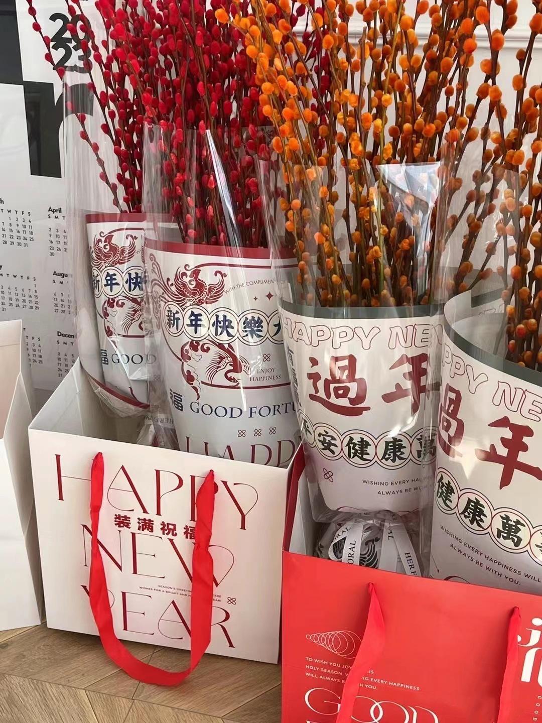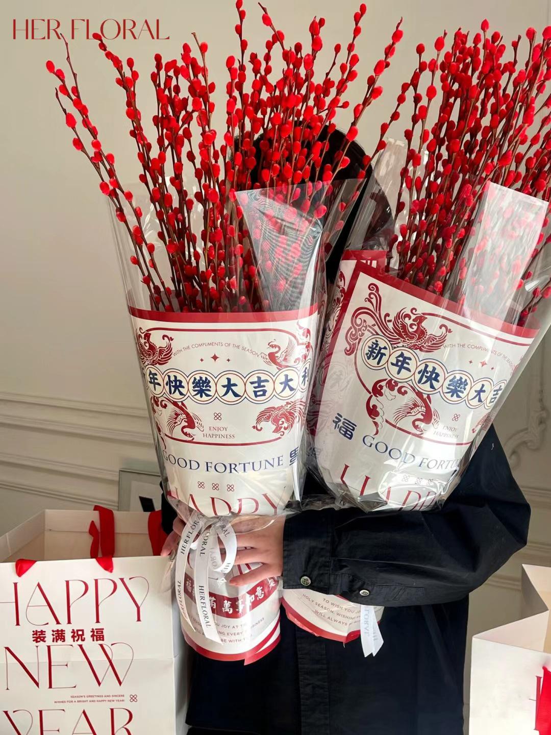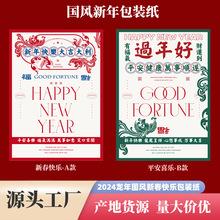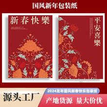 2025 Feliz Año Nuevo papel de regalo Material de decoración floral de Año Nuevo Papel de regalo festivo rojo Papel de regalo para ramo al por mayor
