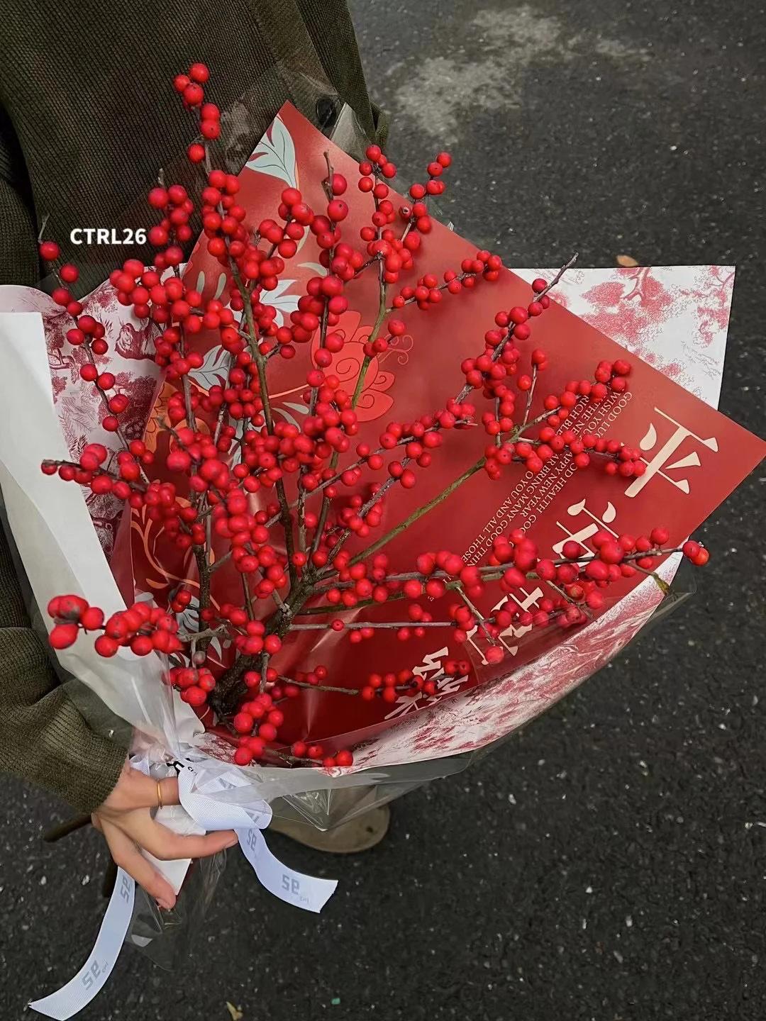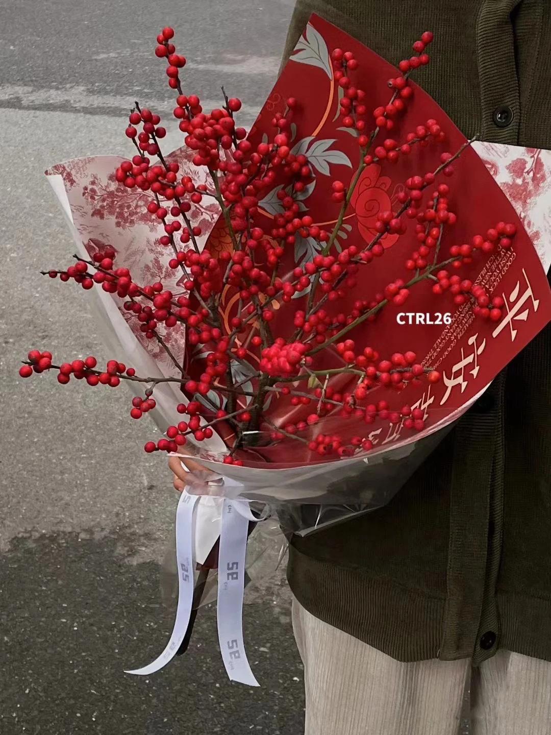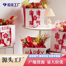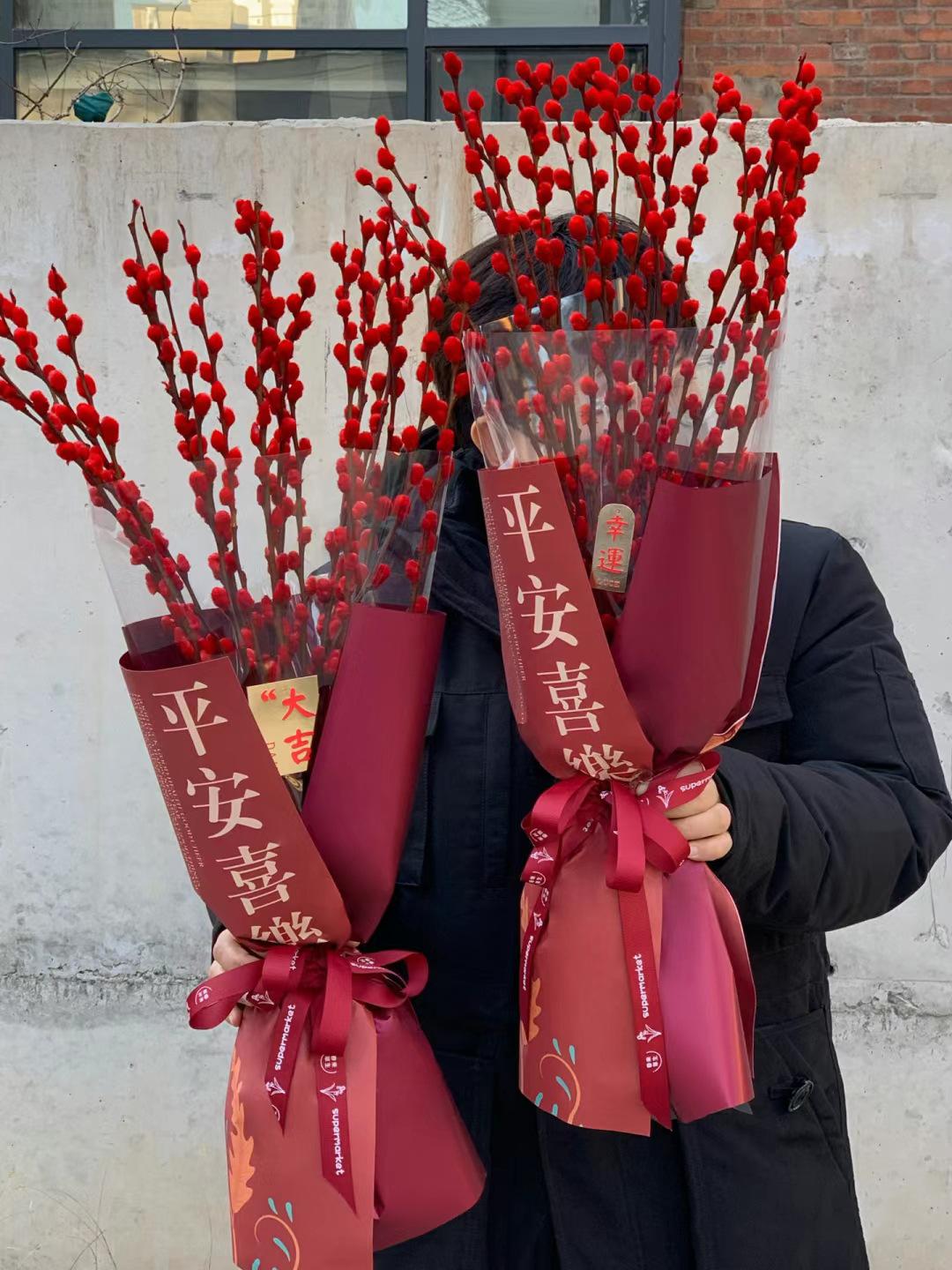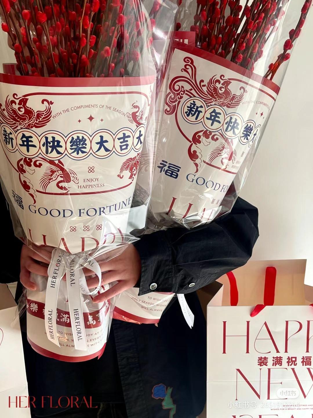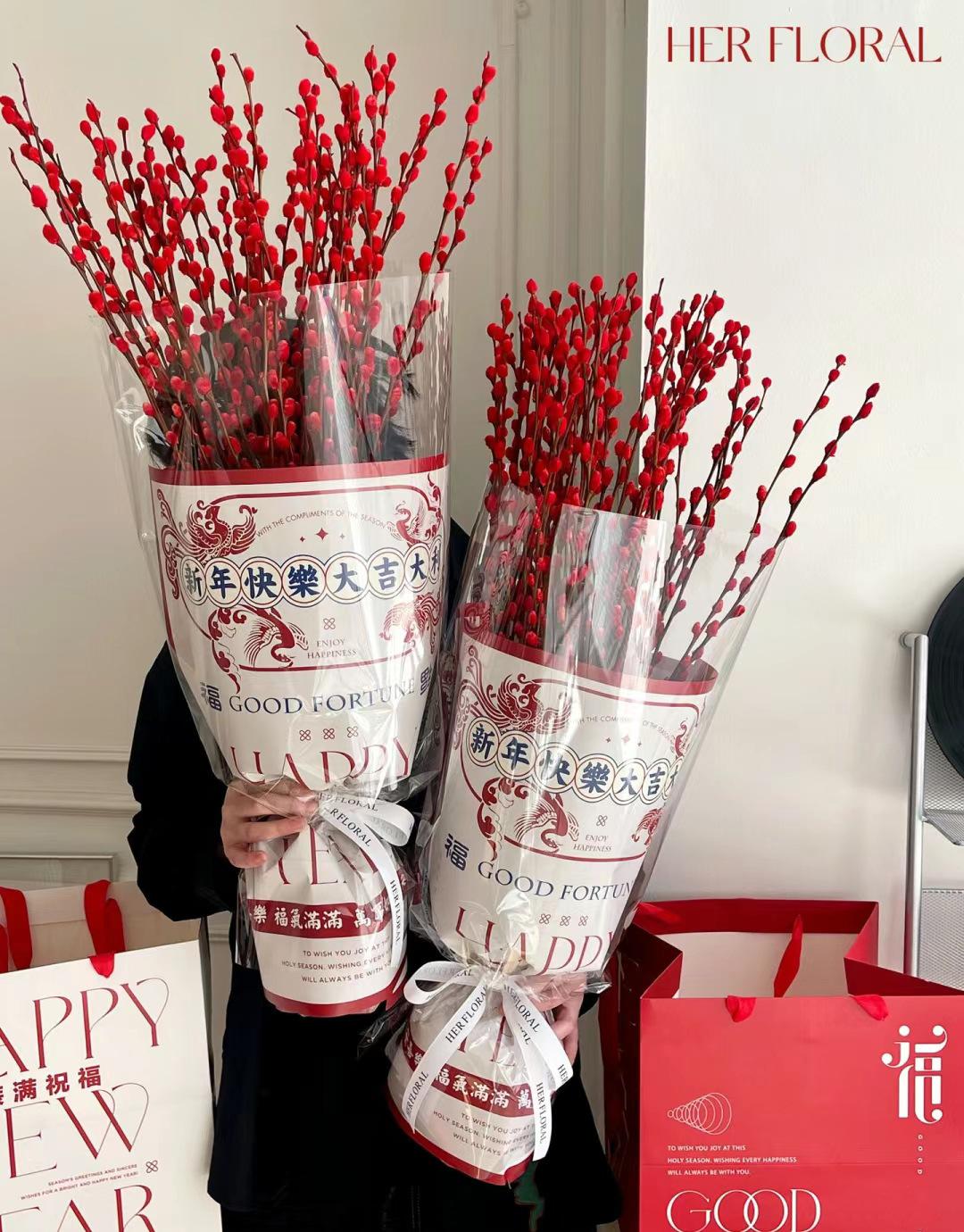 2025 Feliz Año Nuevo papel de regalo Material de decoración floral de Año Nuevo Papel de regalo festivo rojo Papel de regalo para ramo al por mayor