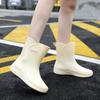 Botas de lluvia de media pantorrilla estilo coreano para mujer, botas de lluvia casuales, de moda y brillantes, botas de agua de suela gruesa, antideslizantes y resistentes al desgaste, chanclos de goma