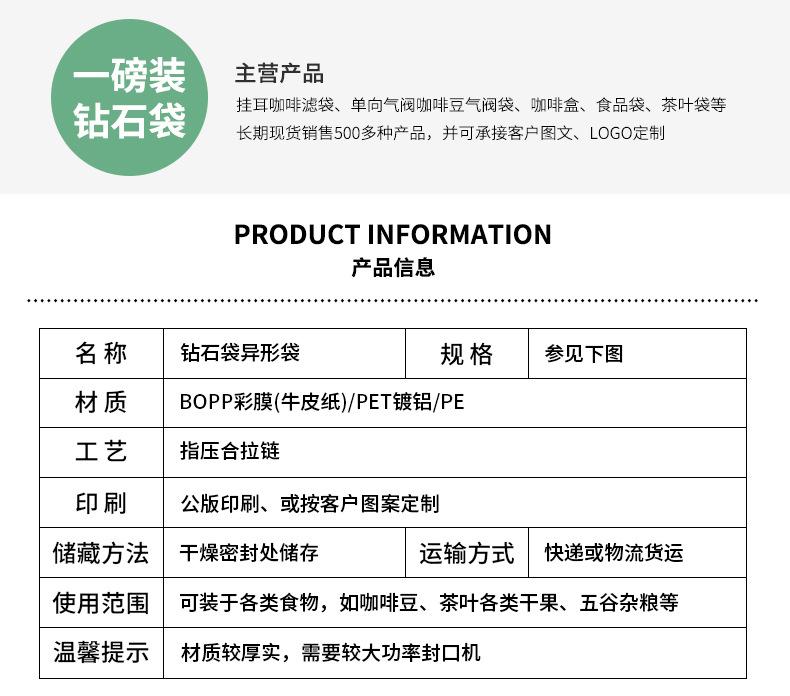 Bolsa de embalaje de café de 500 g, bolsa de aluminio con forma de diamante, independiente, se puede imprimir, bolsa de dulces, bolsa triangular, bolsa de té.