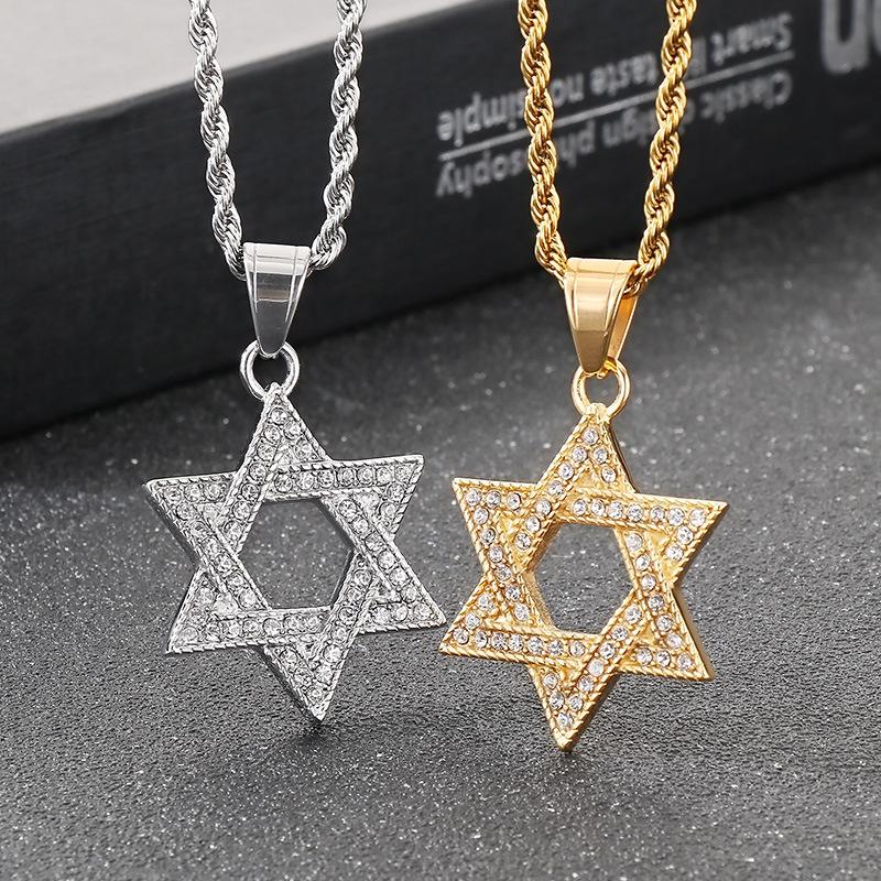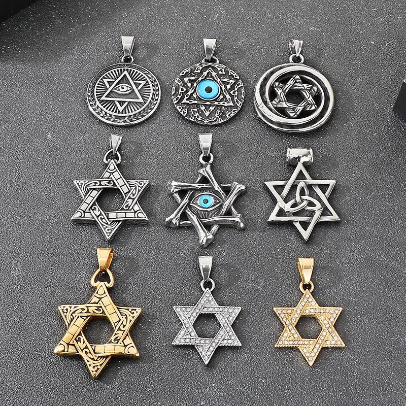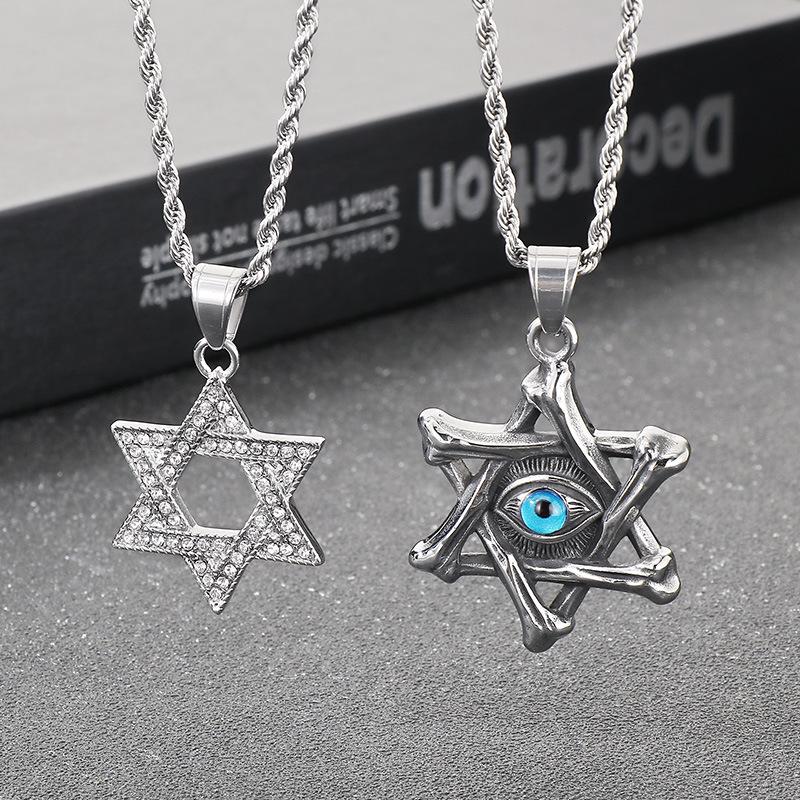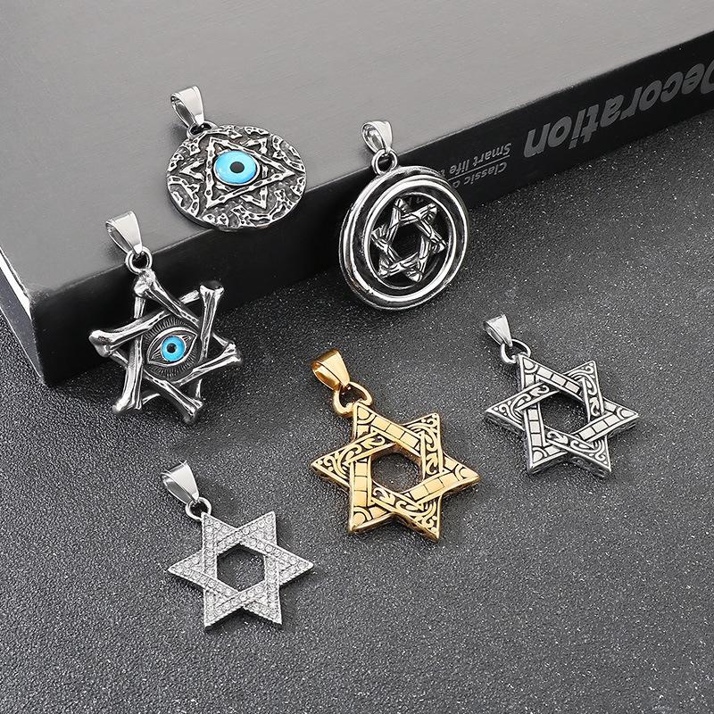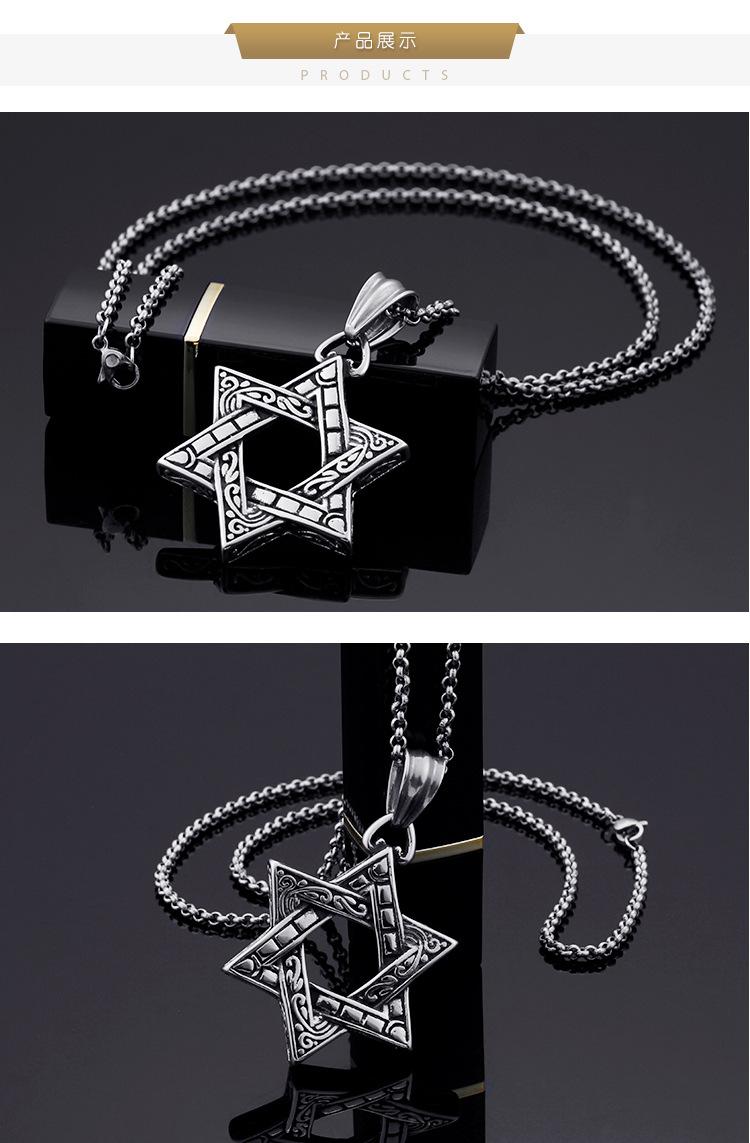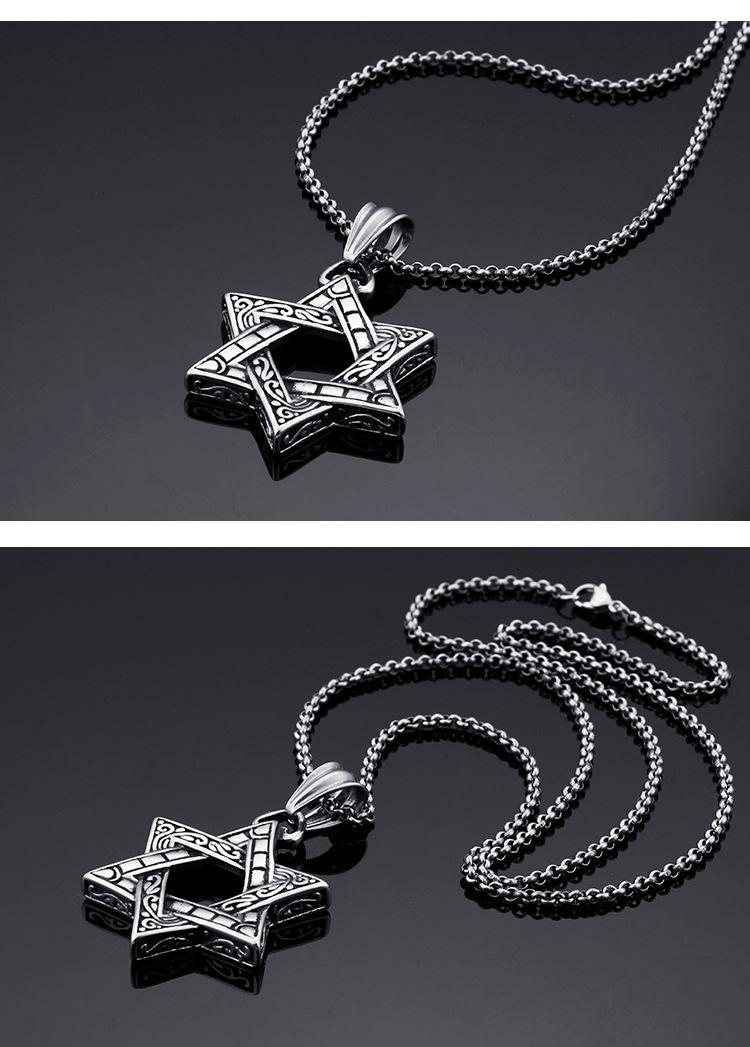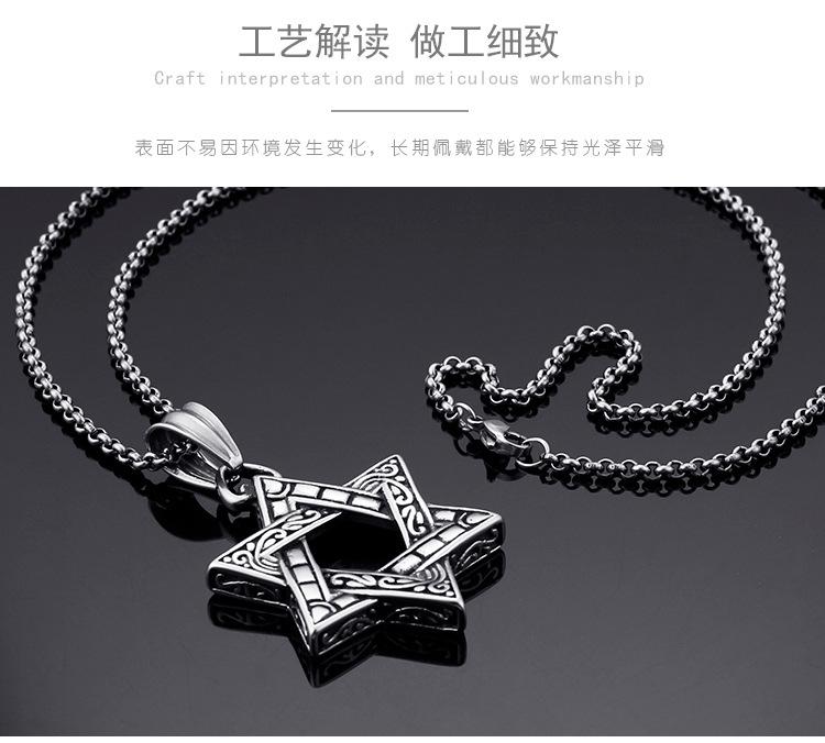 Collar de acero de titanio retro hueco con forma de rueda de tarjeta, nueva estrella de hip hop, collar de acero inoxidable de moda para hombres, colgante de estrella de seis puntas