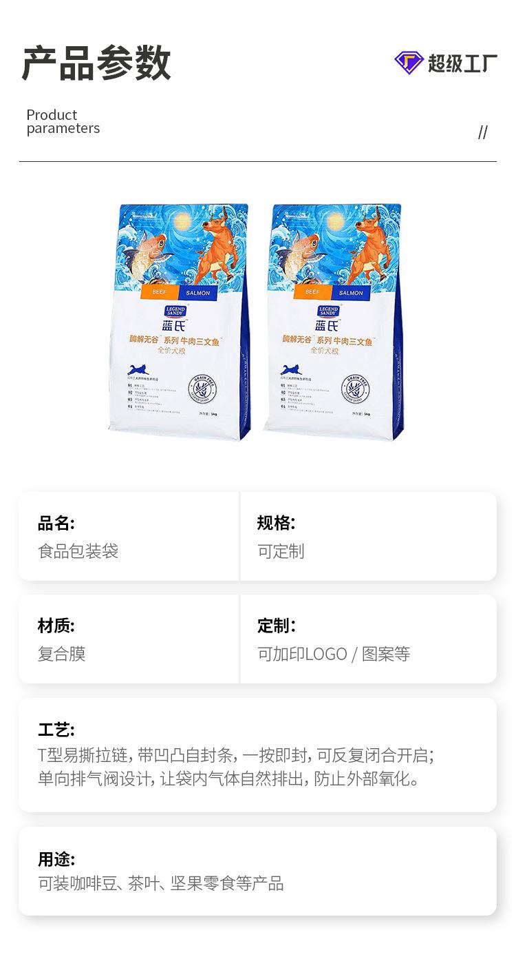 Bolsa de embalaje de comida para perros personalizada con sello de ocho lados, bolsa para comida de gatos autosellable independiente con cremallera deslizante de cuatro lados