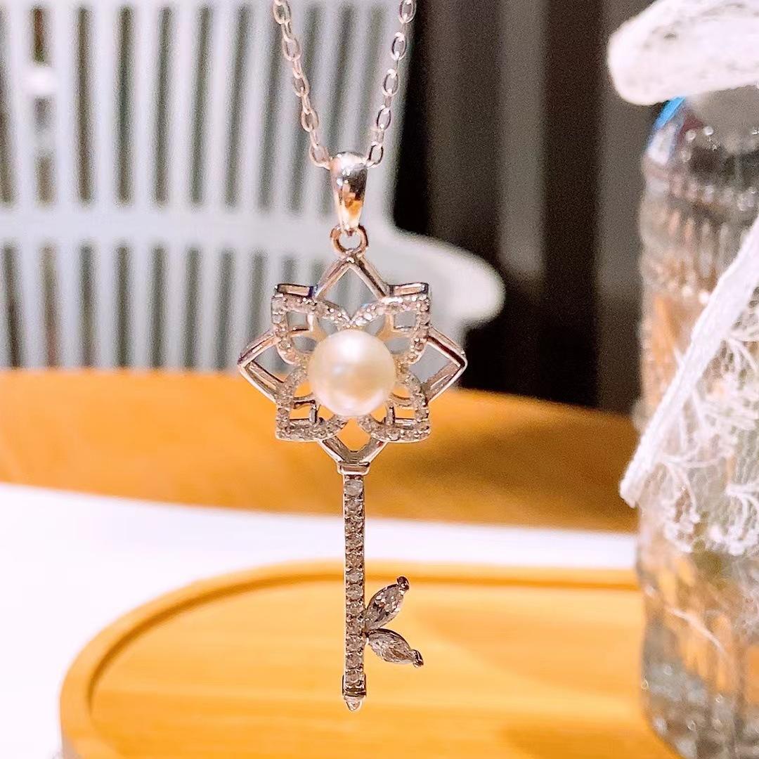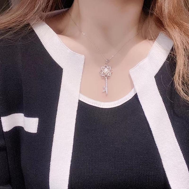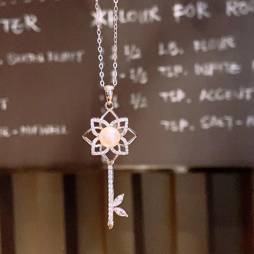 Colgante de plata de ley con forma de llave y perla, cadena de clavícula, collar al por mayor, accesorios de hadas avanzados.