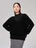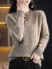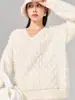 Suéter de Lana Merino con Cuello en V Otoño e Invierno Nuevo Elegante Jacquard Color Puro Top de Lana Suéter de Lana Cálido Holgado para Mujer