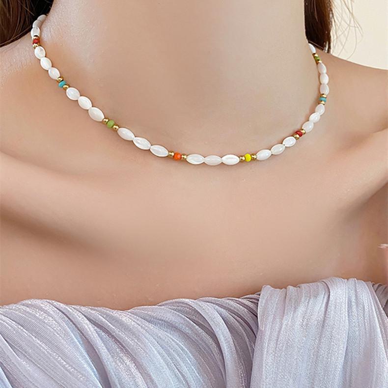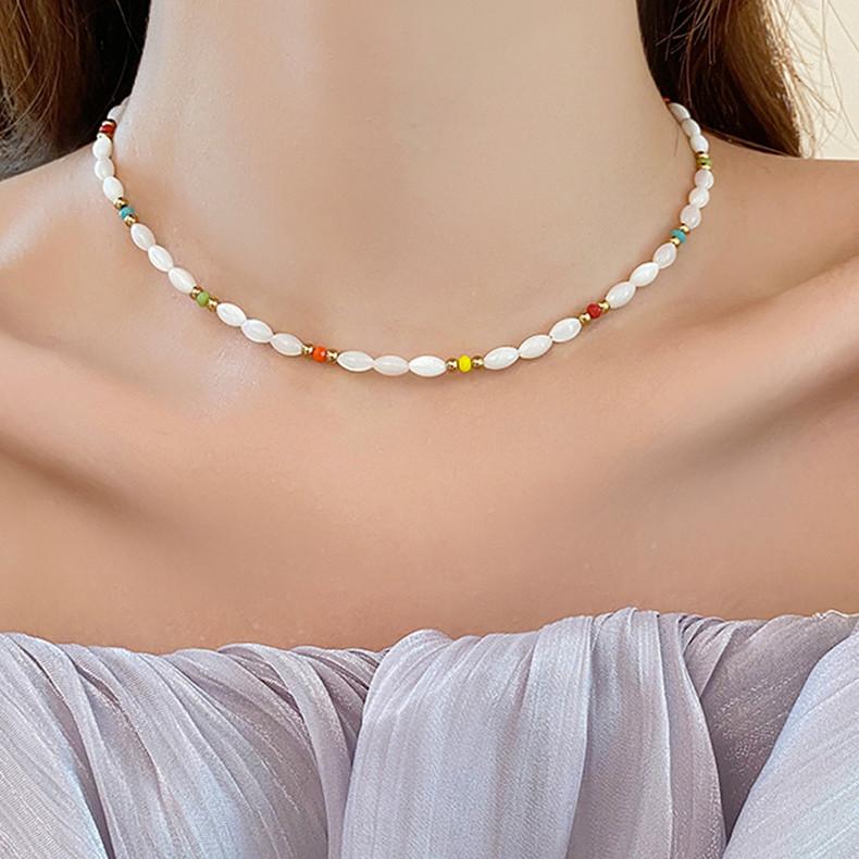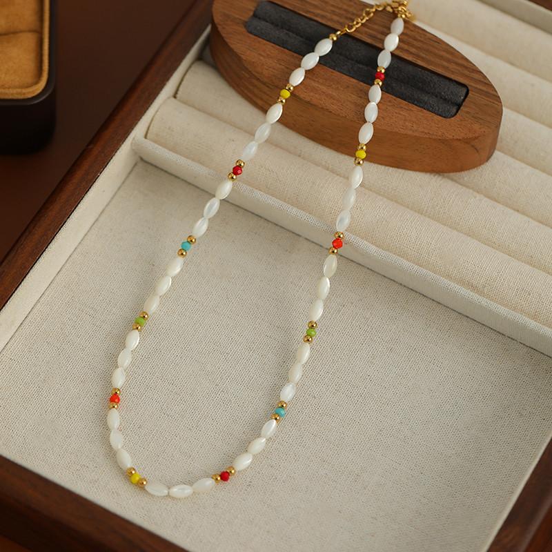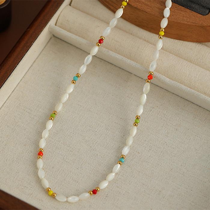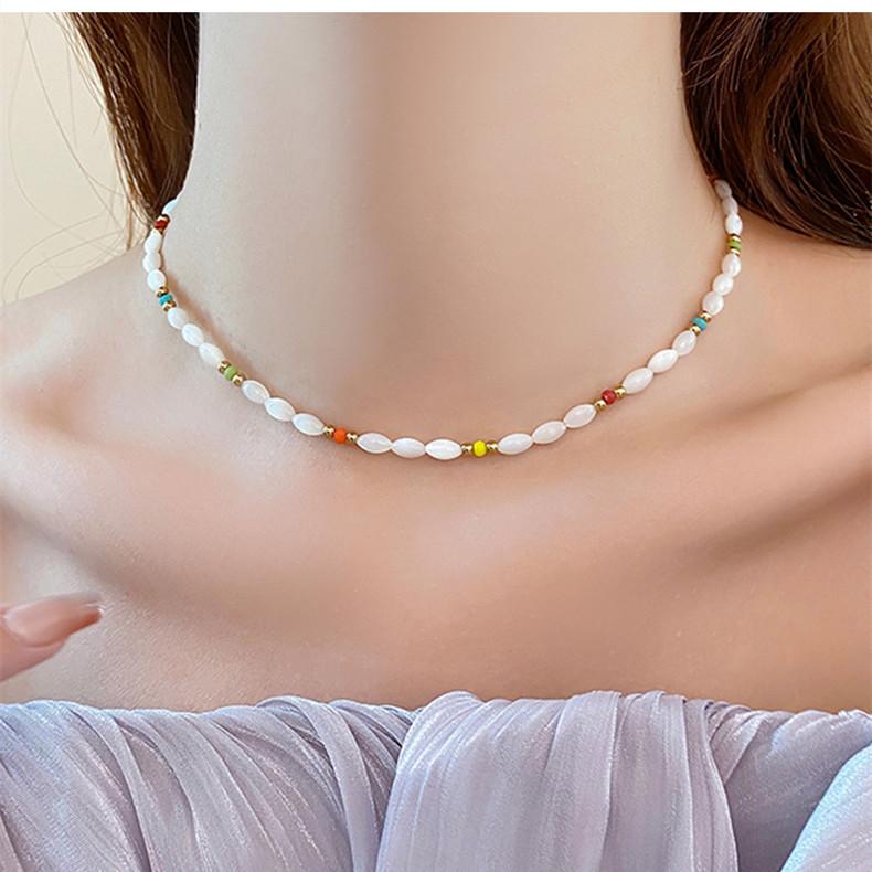 Collar de cuentas de cadena de cristal de colores, diseño de nicho de lujo ligero, elegante collar de cadena de clavícula, cadena de suéter de alta calidad.