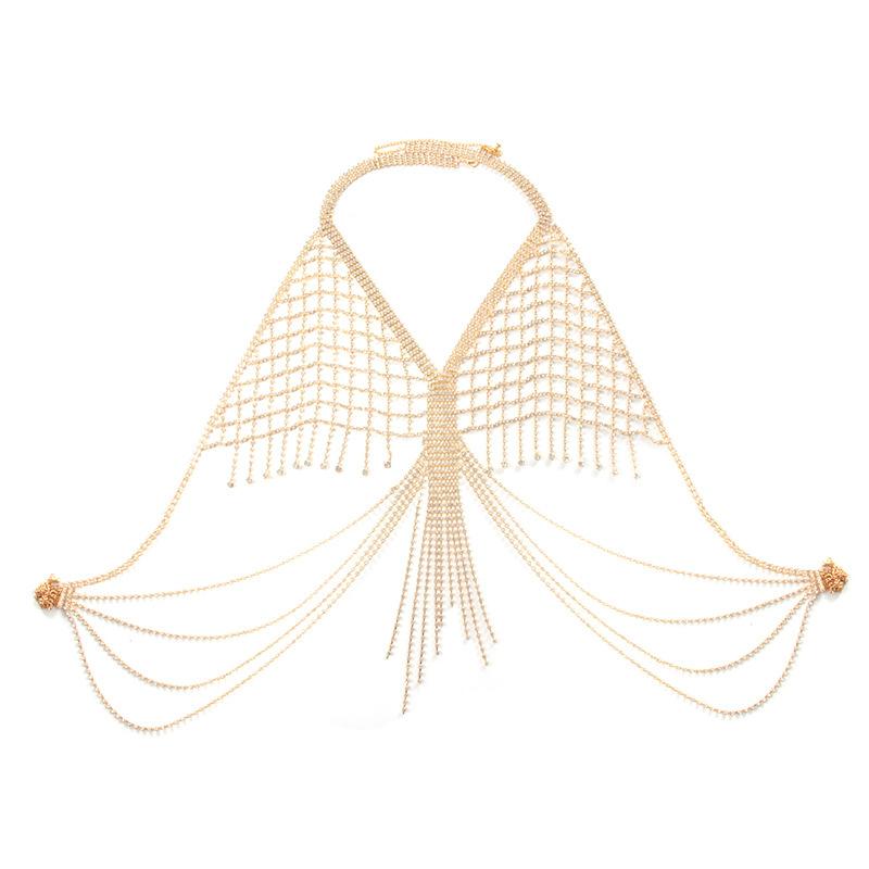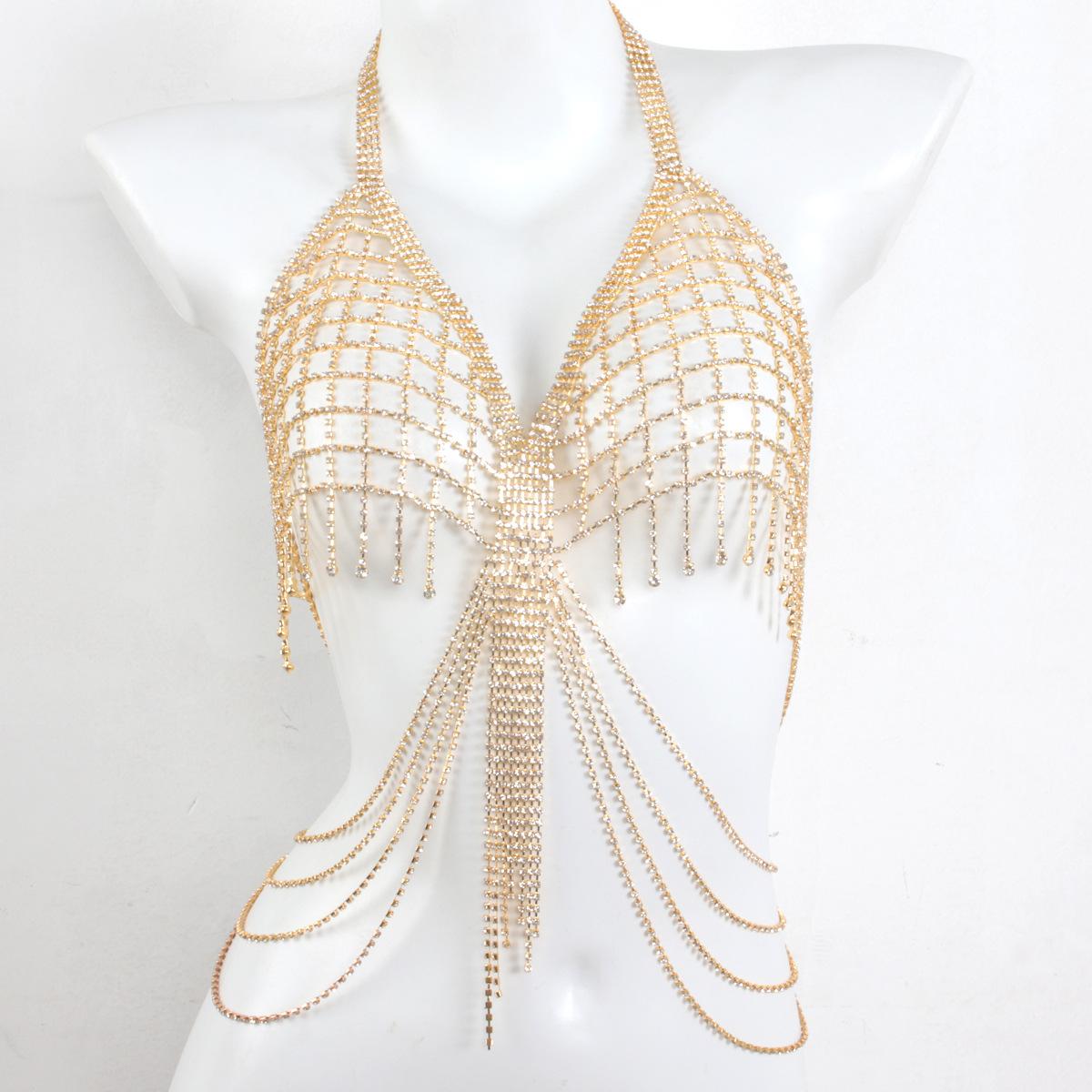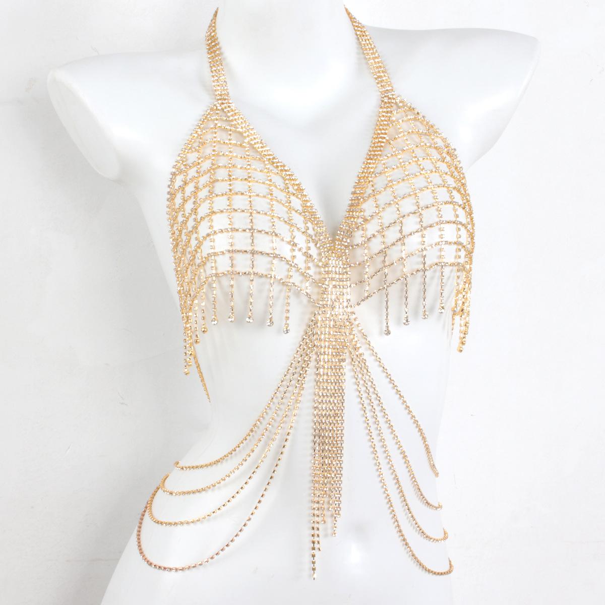 Cadena de pecho con borlas de diamantes de lujo europea y americana, accesorio para mujer, tienda de noche, fiesta, bikini sexy, sujetador, cadena decorativa para el cuerpo.