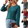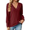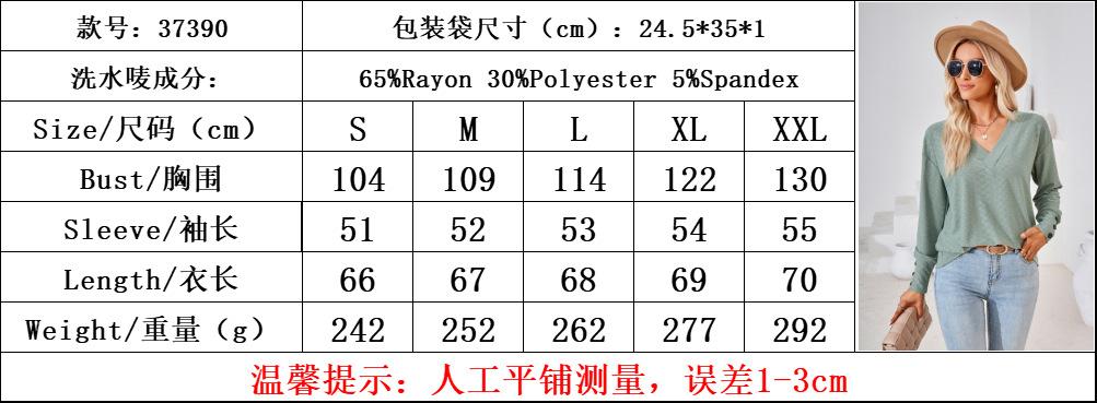 Amazon 2023 Comercio exterior transfronterizo europeo y americano Otoño e Invierno Nueva camiseta holgada con botones de jacquard y cuello en V de color sólido Ropa de mujer