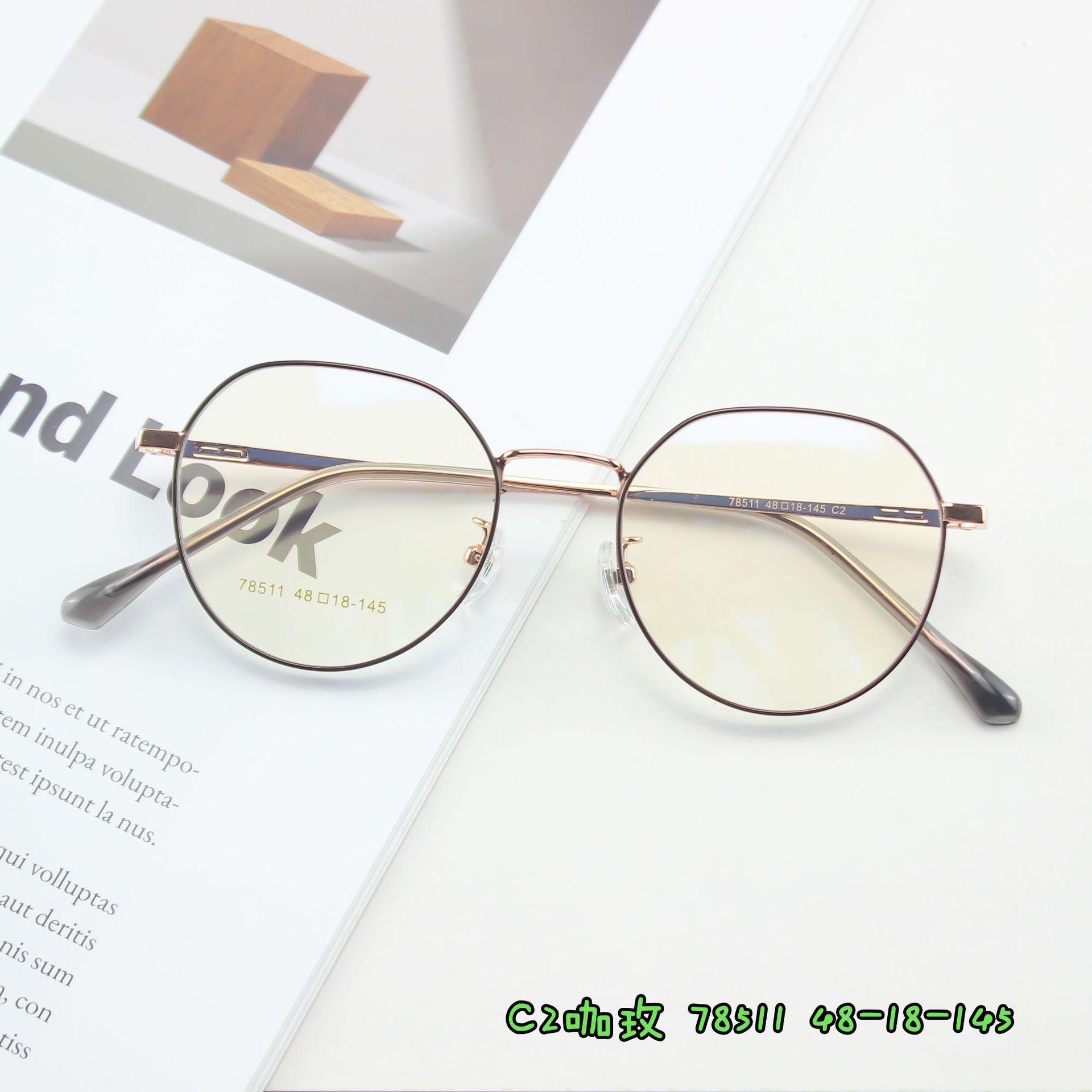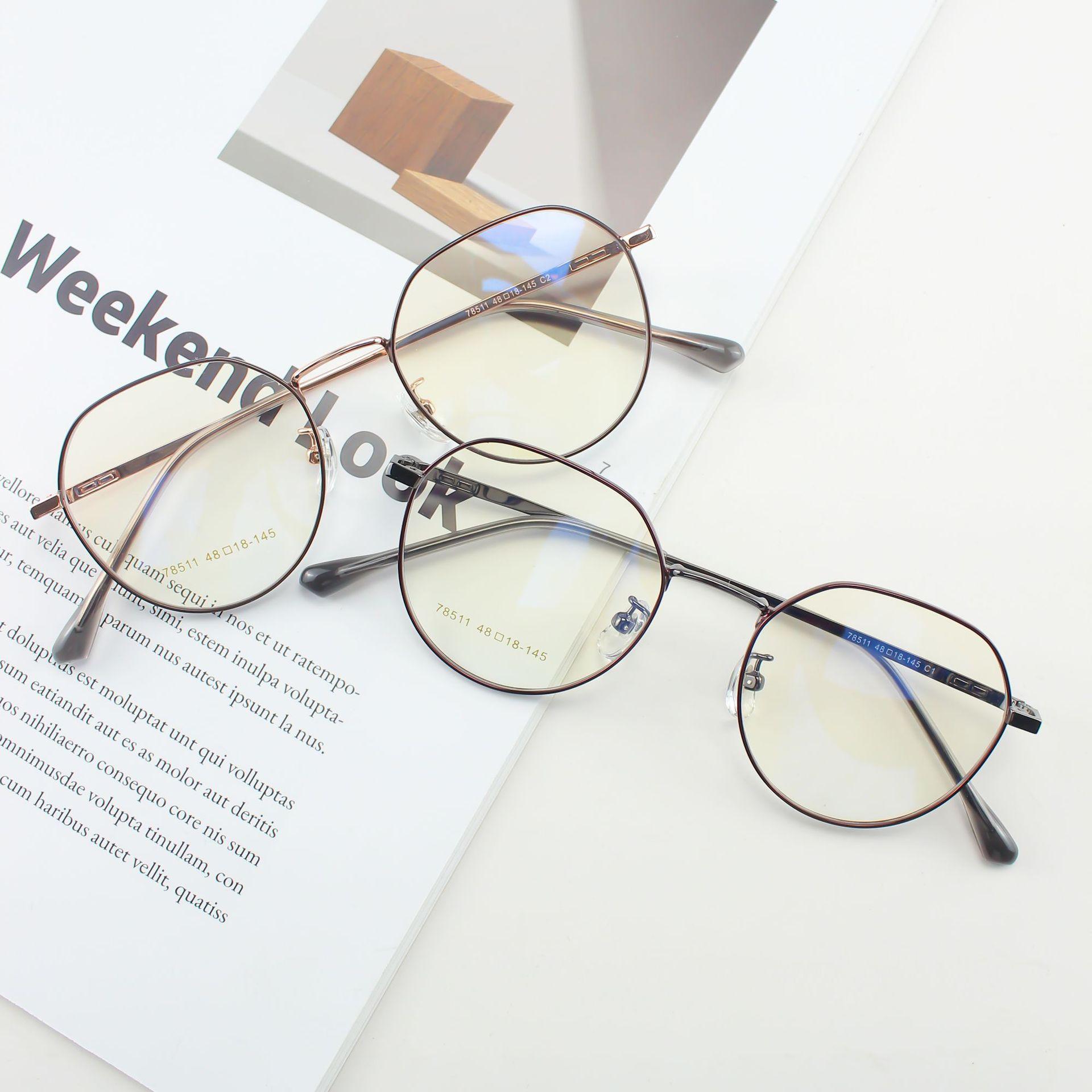 Nuevos Lentes Metálicos Vintage de Celebridad de Internet al Mayoreo Electrochapados Bicolor Poligonales de Montura Pequeña Montura para Miopía Se Puede Equipar con Miopía
