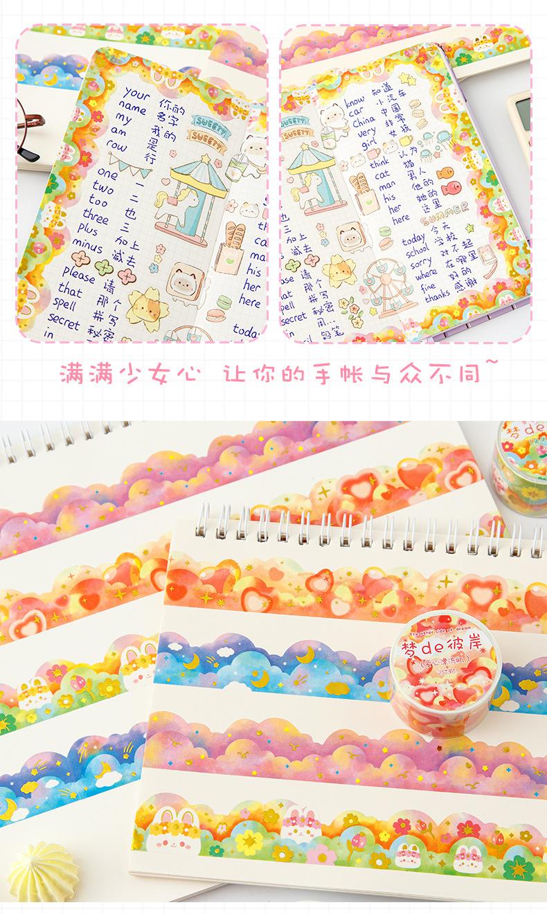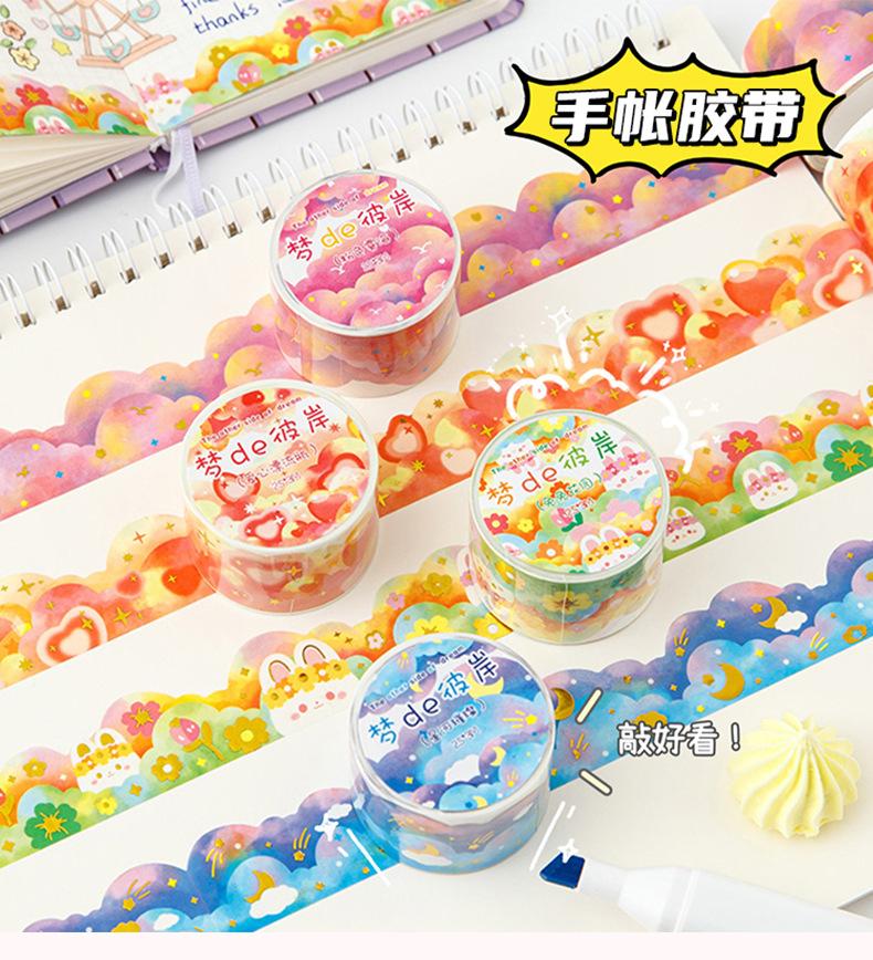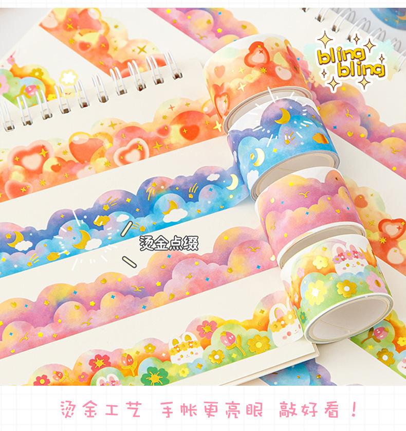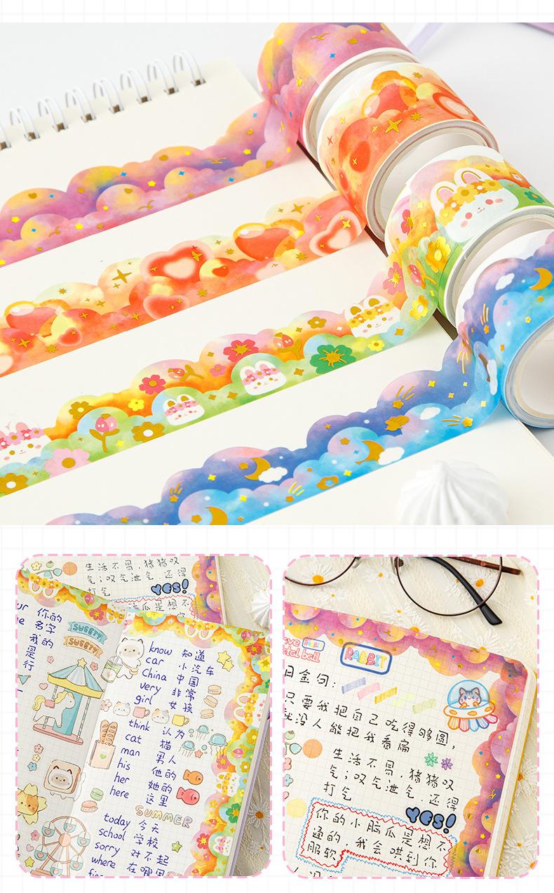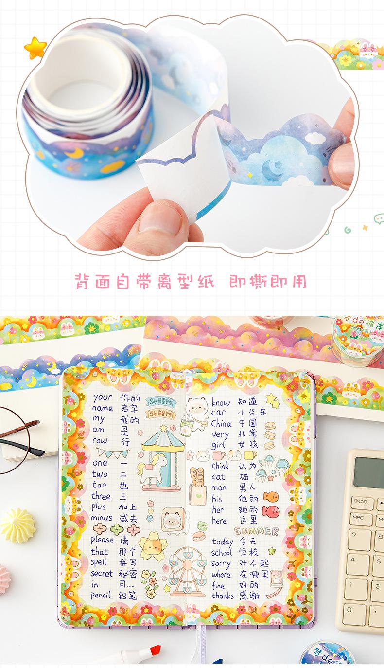 Cinta de nube de fantasía con encaje, pegatinas para diario con formas especiales, cinta para diario y diario de papel, pegatinas de material cinematográfico al por mayor