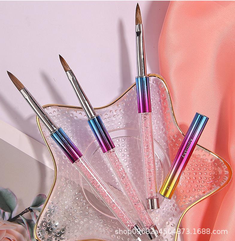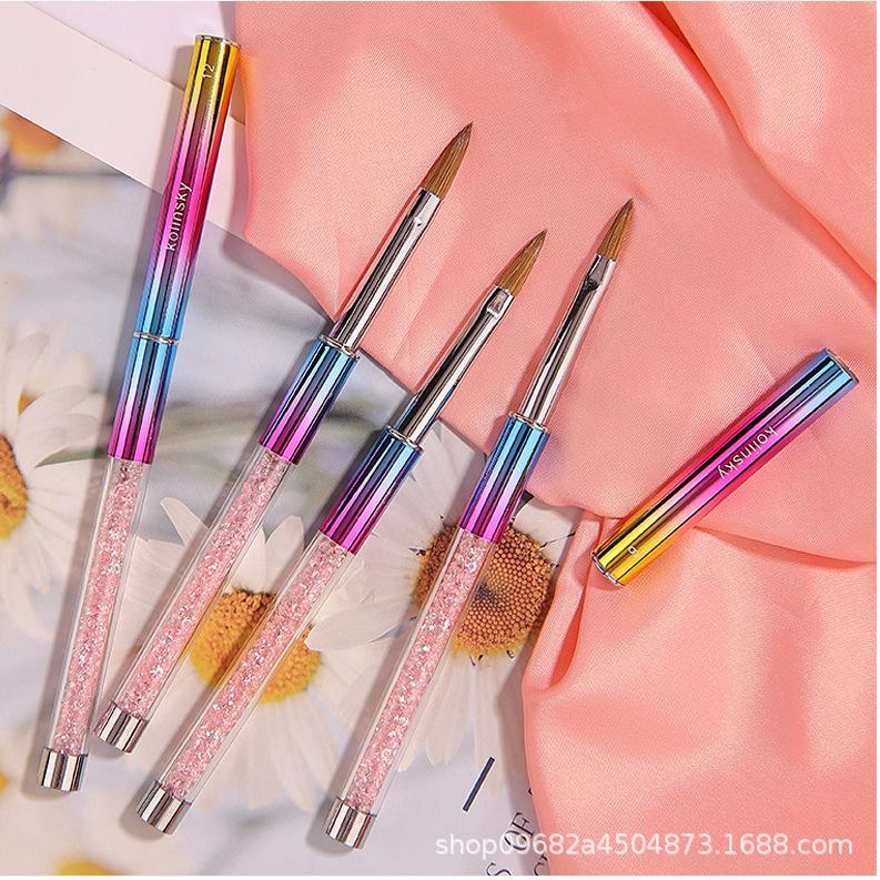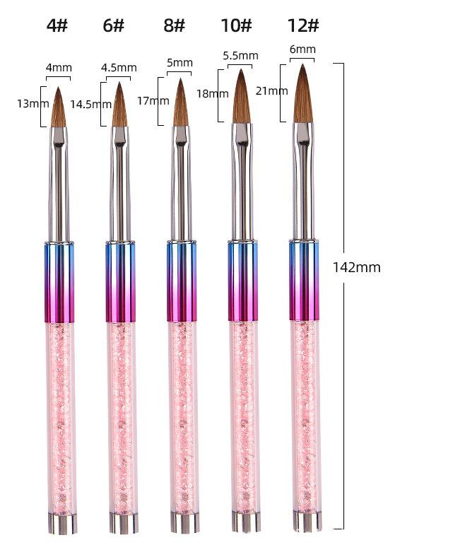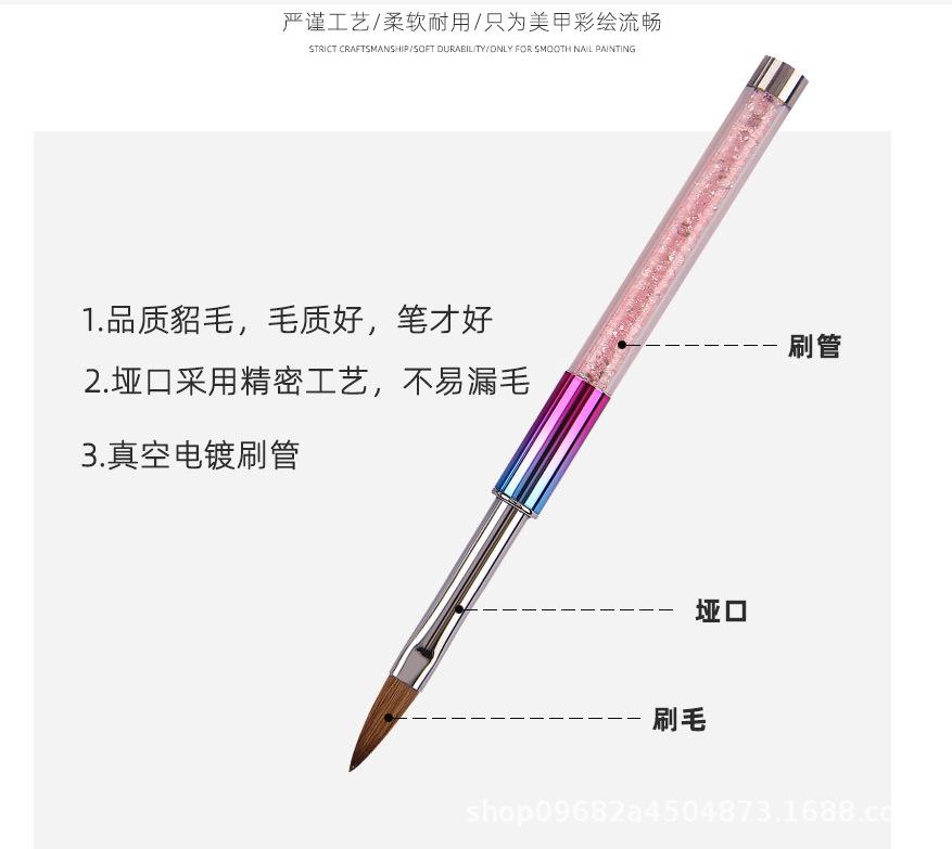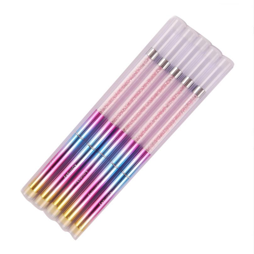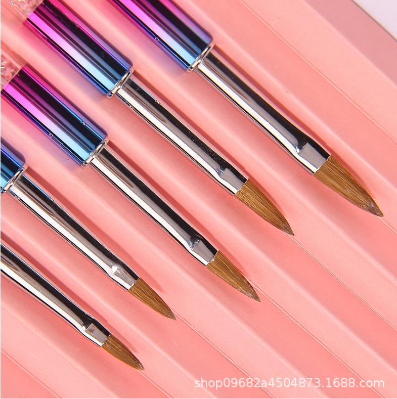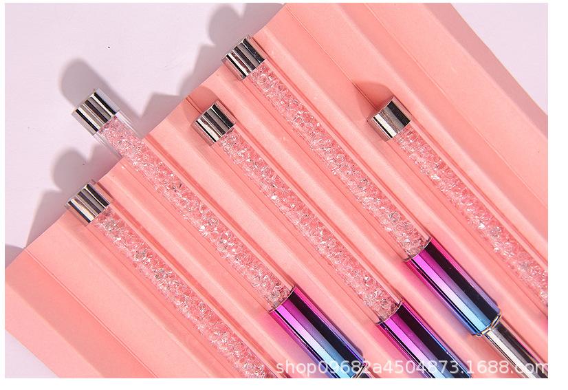 Herramientas para manicura con varillas de metal de colores transfronterizos, bolígrafo de visón, bolígrafo de cristal, bolígrafo para tallado, bolígrafo de cristal para manicura, venta al por mayor