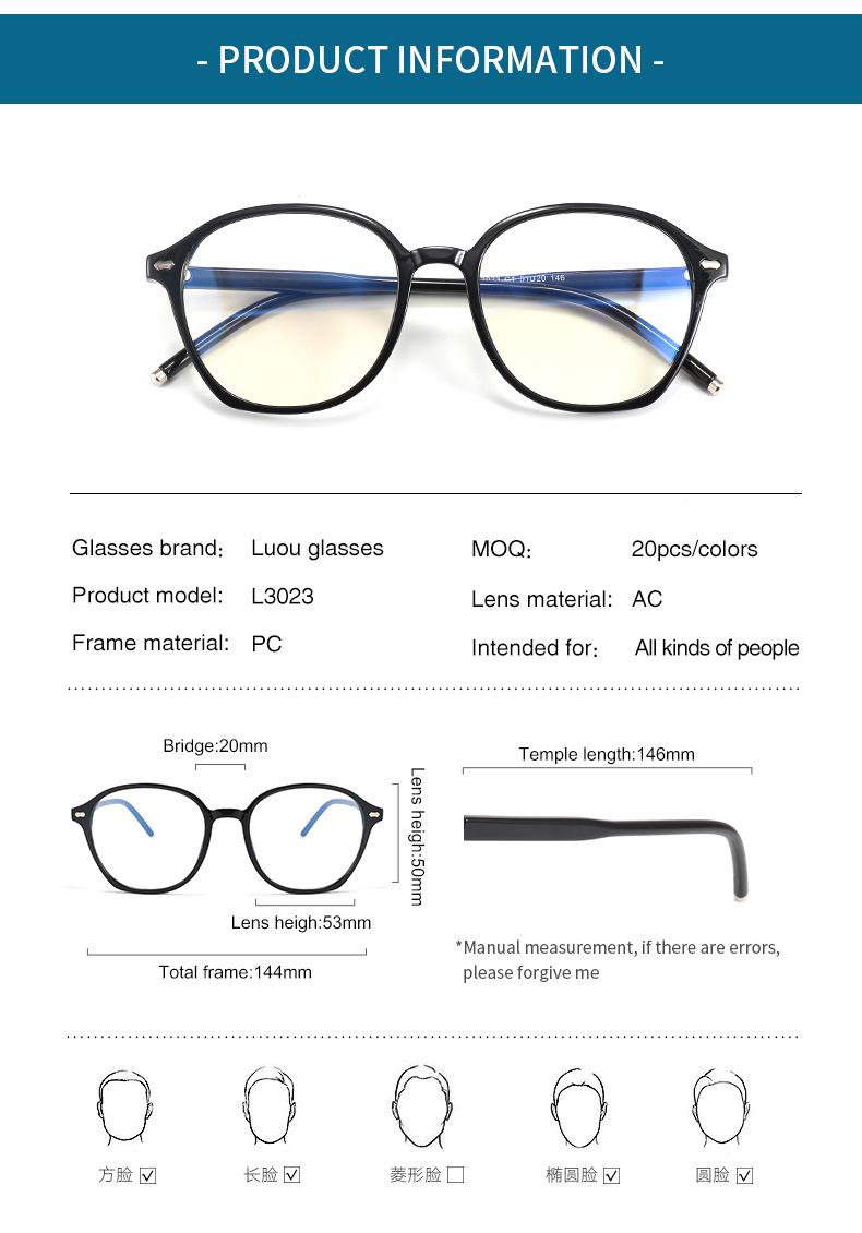 2025 Nuevos Lentes Antiluz Azul Transfronterizos Marco Redondo Retro Uña de Arroz Luz Azul Lentes de Espejo Plano Marco de Gafas Jtl3023