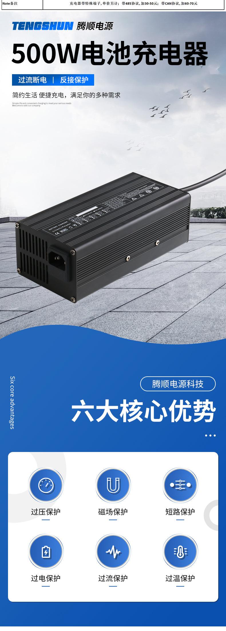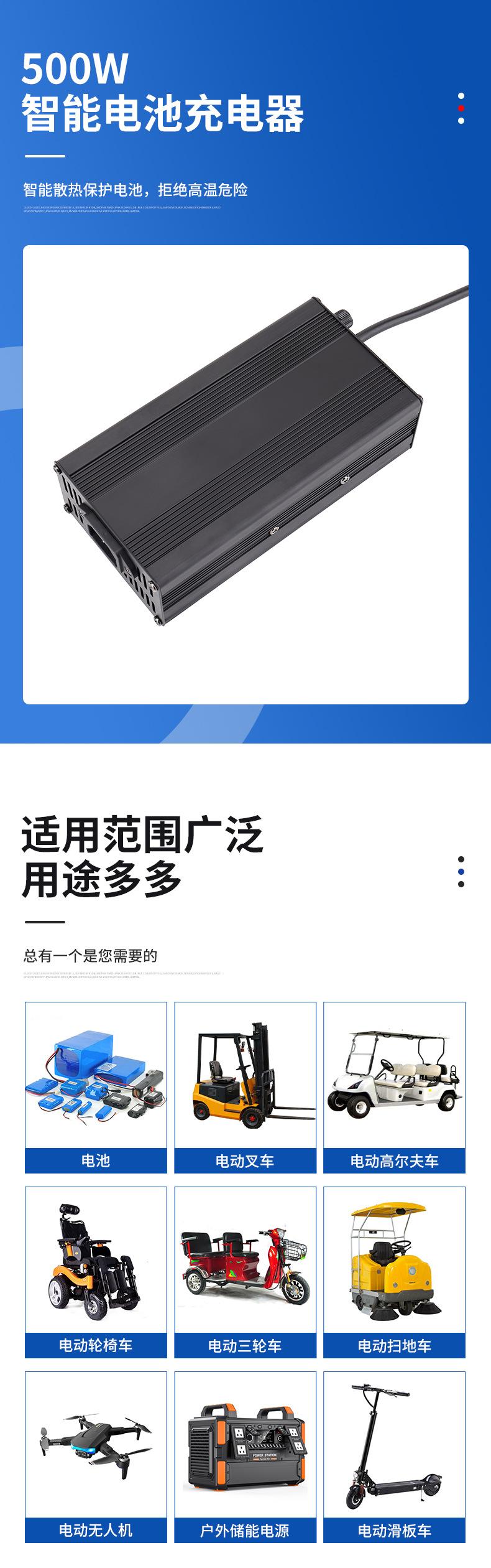 Cargador de batería de litio de 500 W para baterías de litio de 12,6 V/29,4 V/42 V/50,4 V/54,6 V/67,2 V/84 V