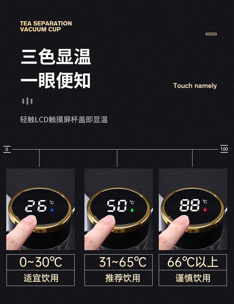 Taza termo inteligente de acero inoxidable, taza de té con pantalla táctil, taza de separación de temperatura, taza termo 316, taza de regalo al por mayor